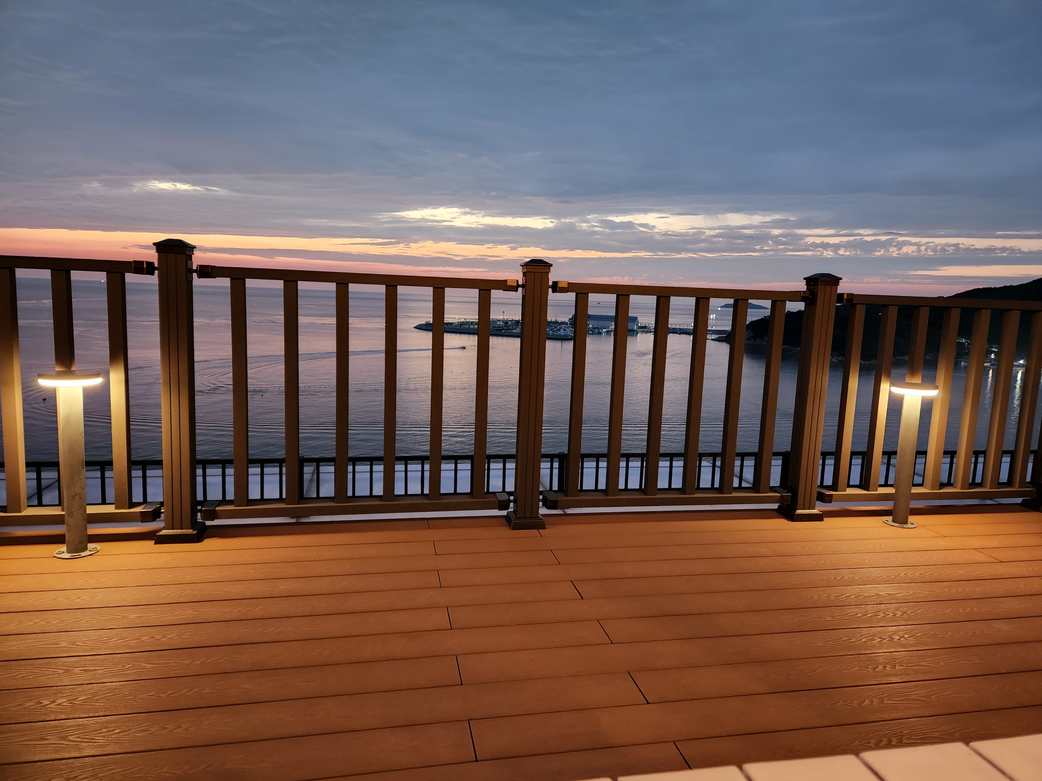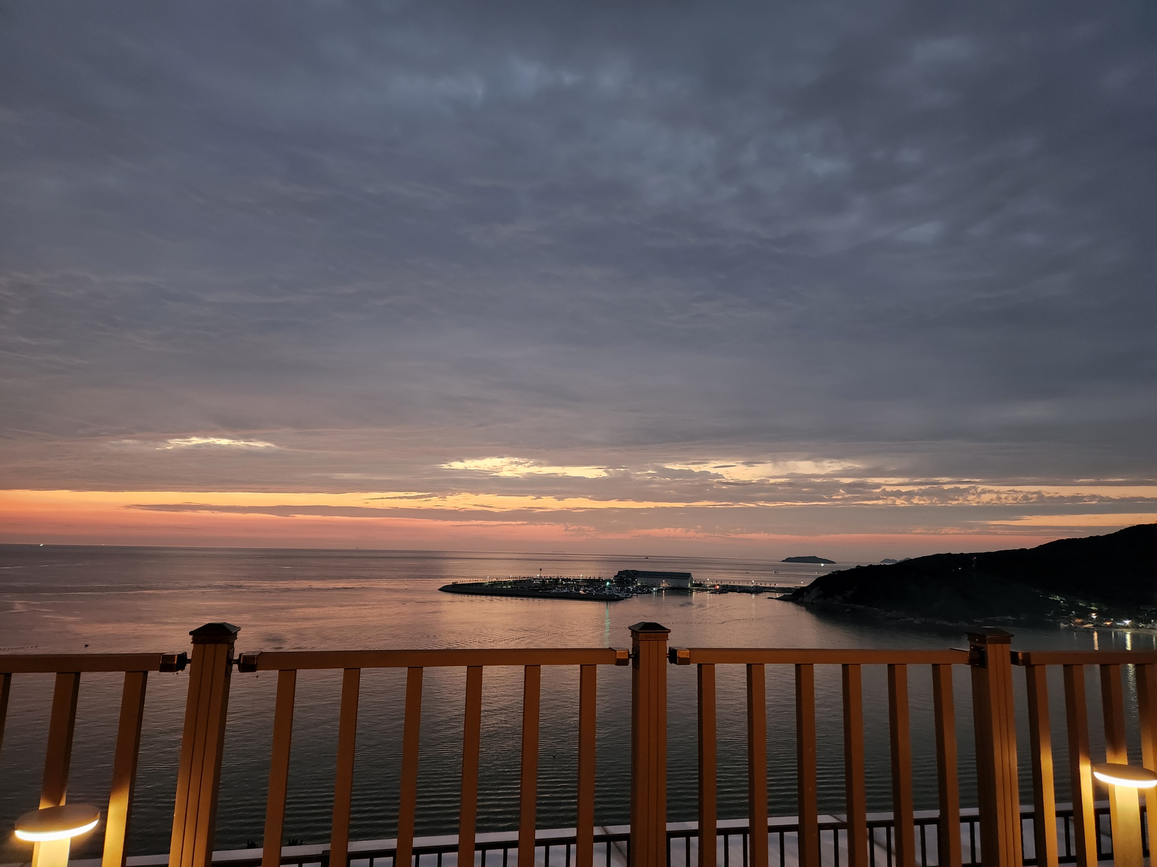 이 공간에는 테이블과 의자도 있어서 간단하게 먹거리를 들고오면 석양을 보면서 야경까지 함께 즐기면서 머물 수 있을 듯 싶었다. 우리 가족은 방에서 먹으려던 치킨을 준비해왔기에 이 공간을 활용하기 좋았다. 그 덕분에 석양사진부터 야경 사진, 가족들 각자의 독사진과 단체사진도 찍으면서 한껏 여유를 즐길 수 있었다.