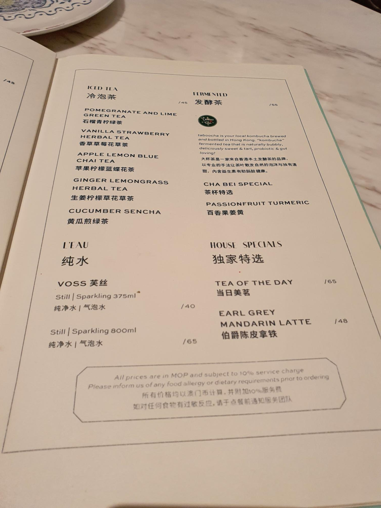 여러 종류의 차도 있으니 추가로 차를 주문해도 된다. 홍콩이나 마카오는 전체적으로 메뉴에 영어설명이 잘 되어있는 편이라 주문할때도 딱히 어려운게 없었다. (메뉴가 많은 것과 설명을 봐도 정확히 감이 안올때가 고민점이었을뿐....)
