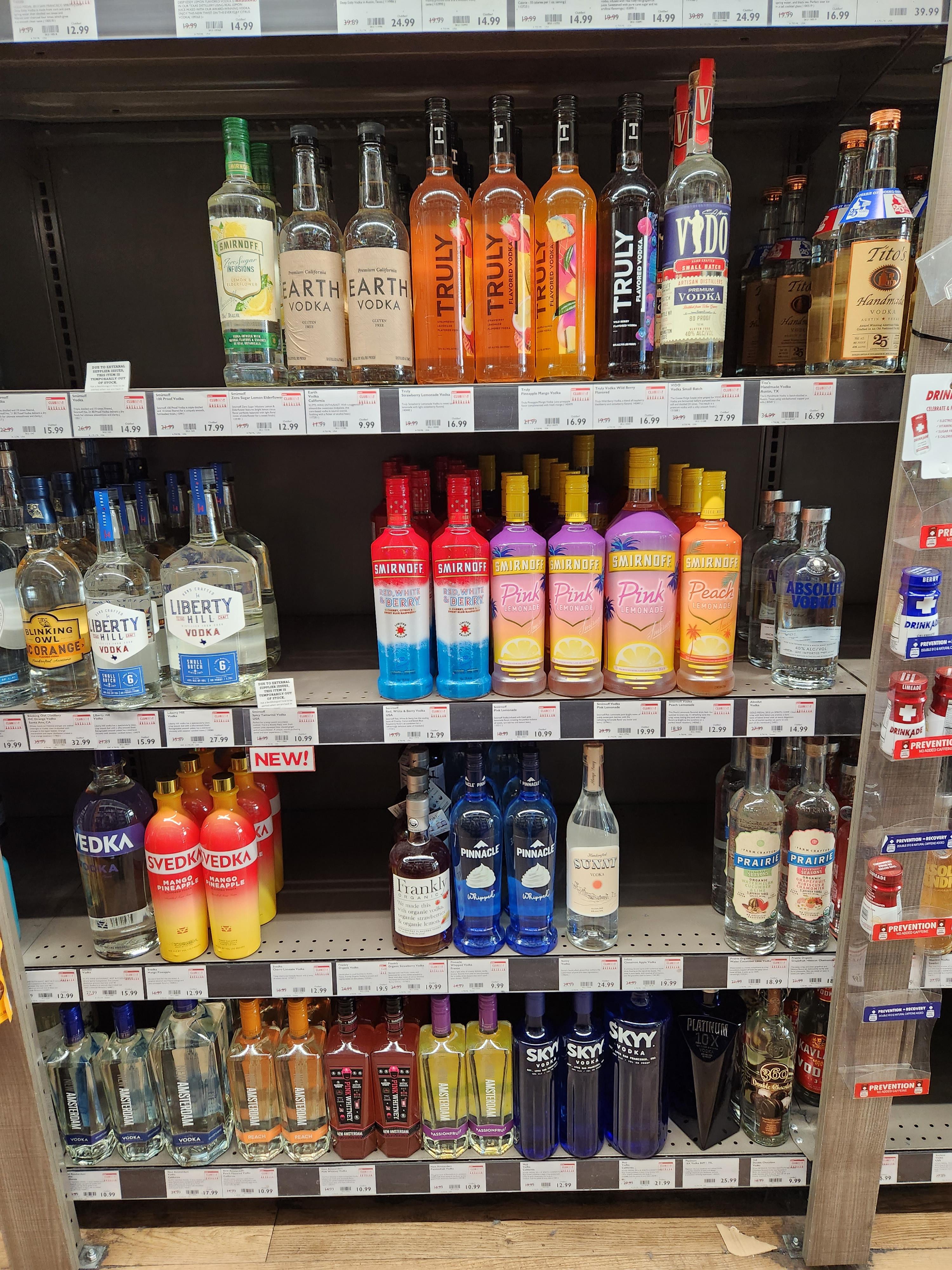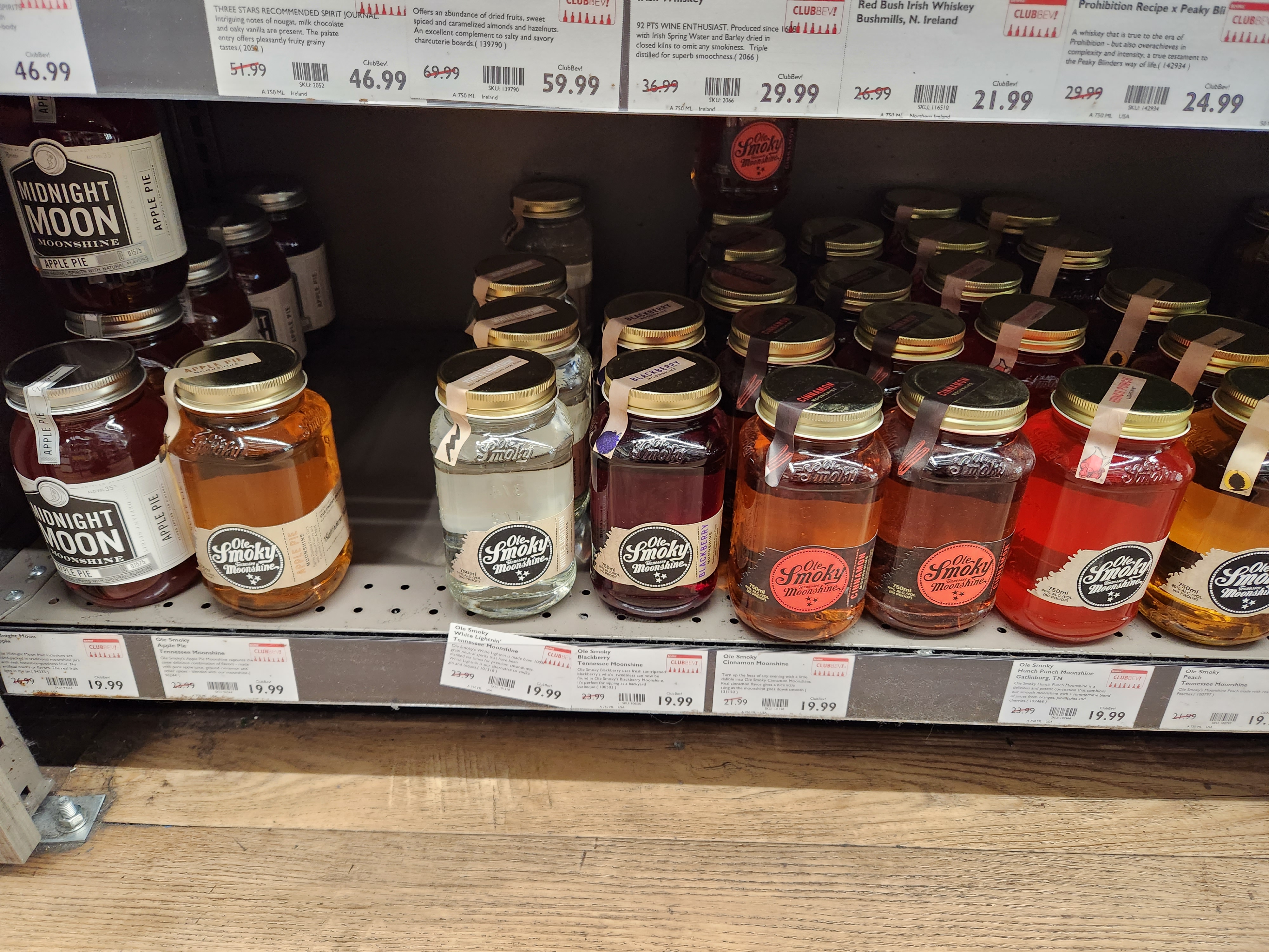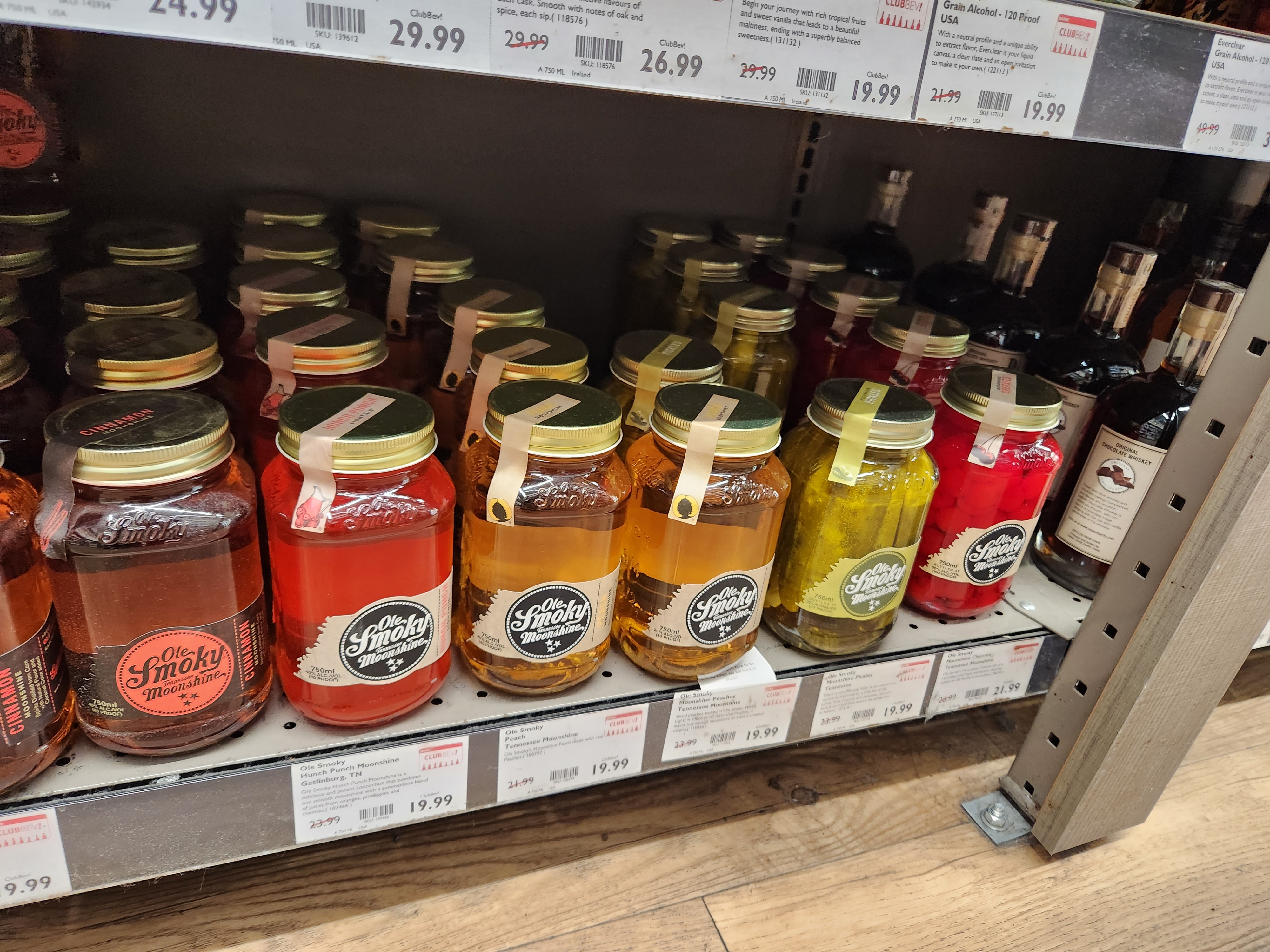 처음에 봤던 문샤인, 담금주 종류도 한국에서 살 수 있던 종류보다 훨씬 더 다양하게 있었다.