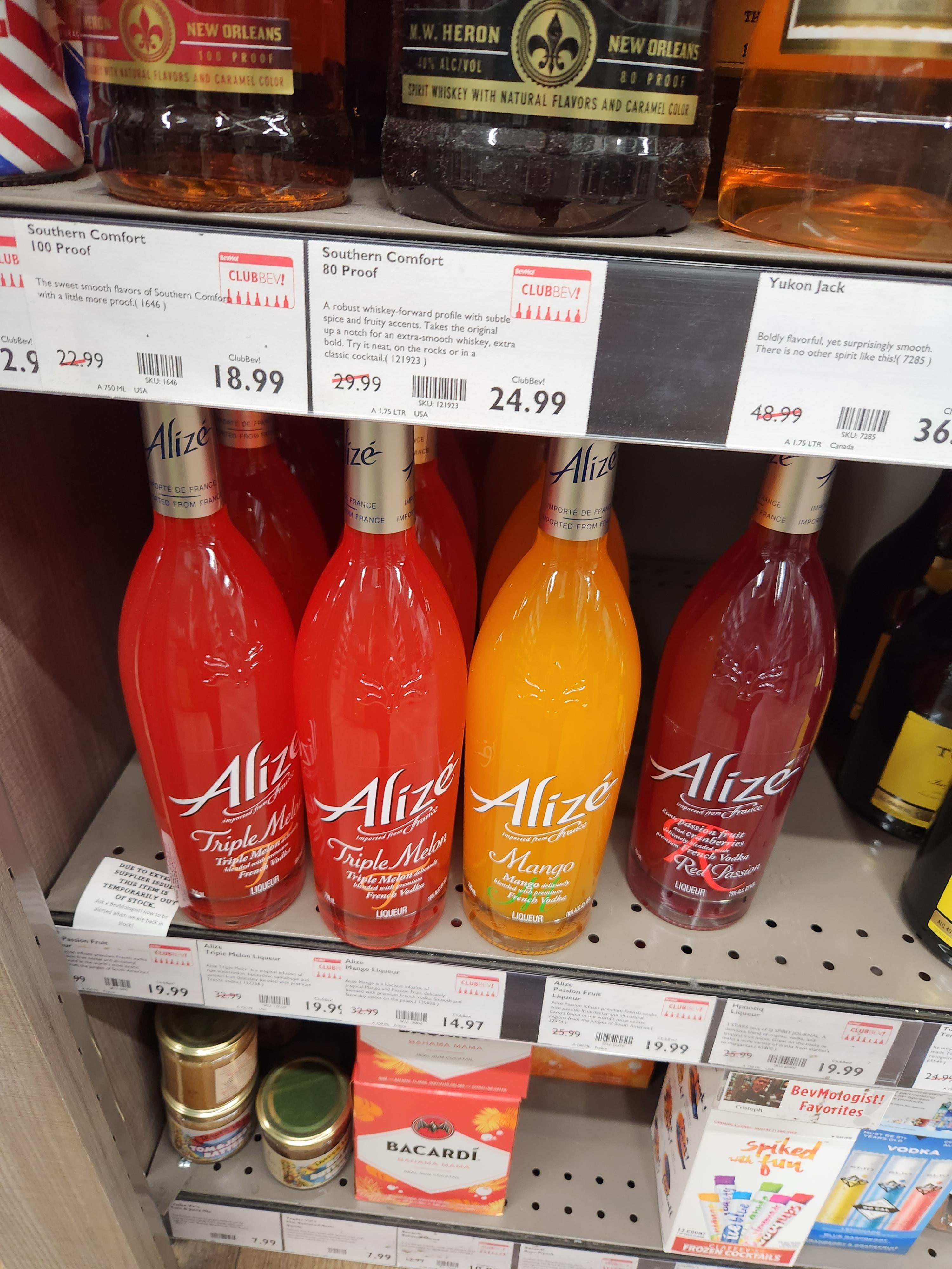 달달한 맛에 쉽게 마시기 좋은 엘리제 Alize . 한국에서 망고맛을 봤나 싶긴 한데... (GS25 앱 와인25에서 한번씩 사곤 한다) 색도 예쁜게 한병 챙겨가서 파티용으로 먹기 좋은데 미국까지 와서 사갈 필요는 없겠다 싶어서 그냥 패스.