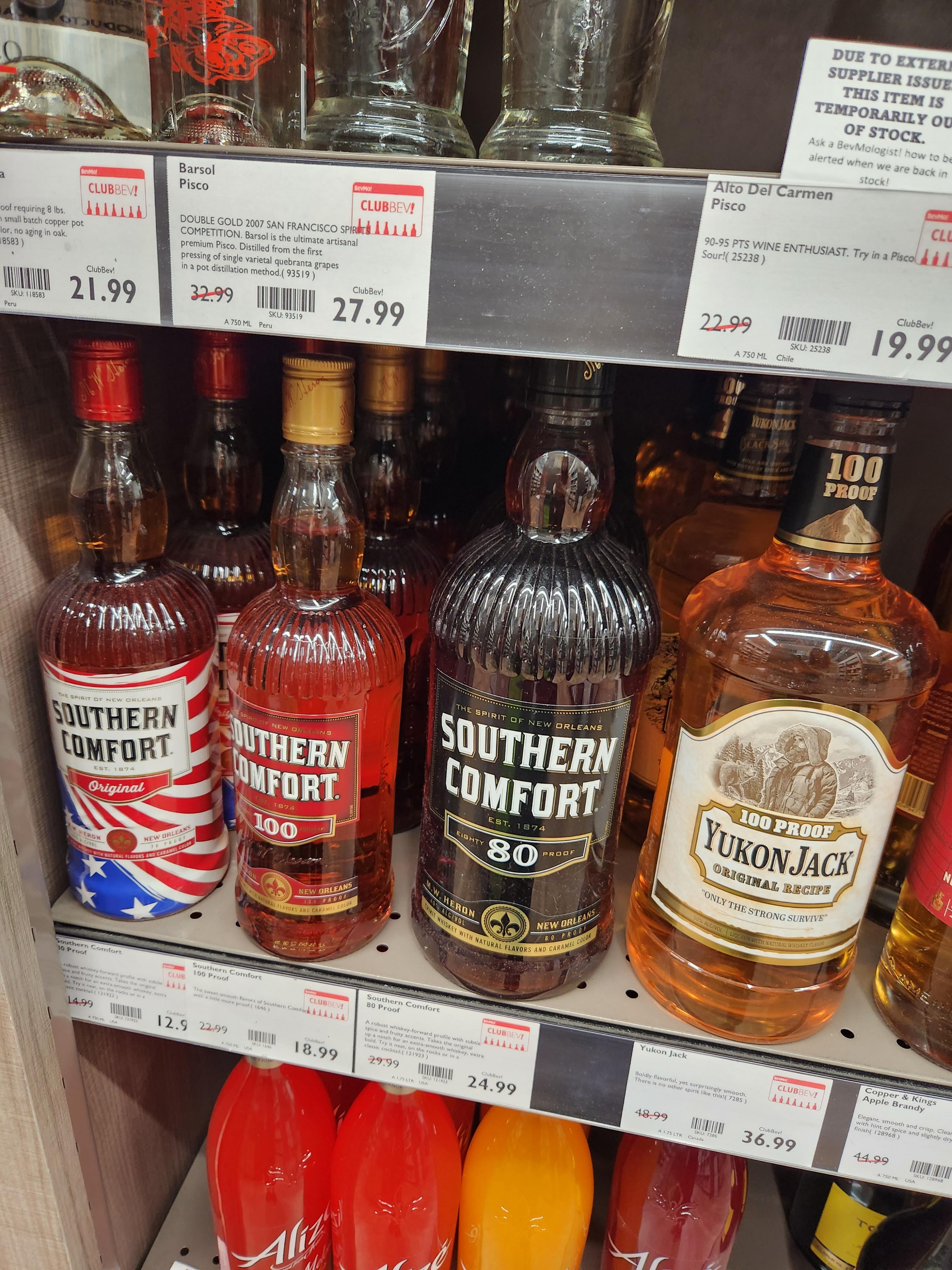 서던컴포트도 종류가 평소 보던 것보다 더 있었다. 미국 국기 그려진건 뭐지...