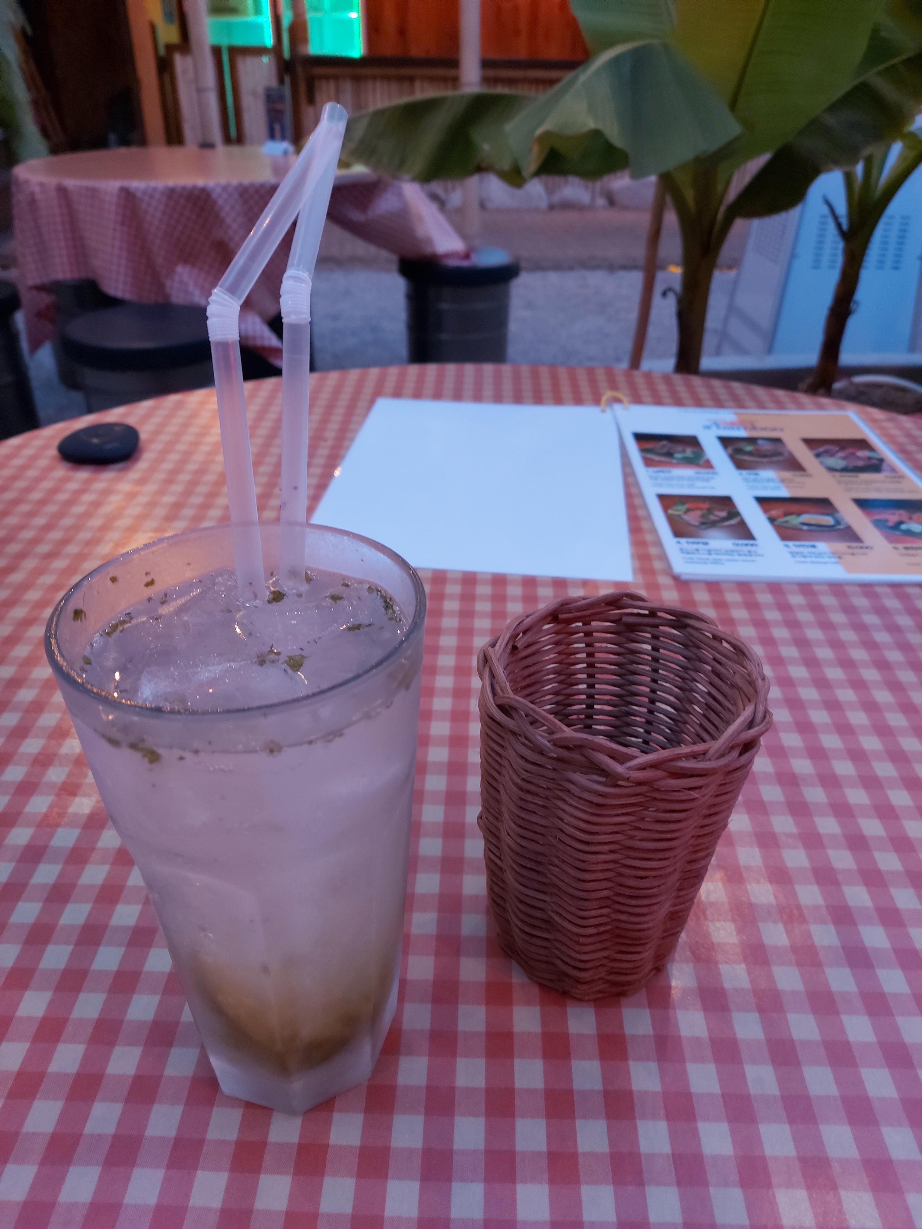 얼음이 커서 민트잎이 떠오르던게 조금 아쉽긴 했지만 맛은 나쁘진 않았다. 알콜러는 무알콜이라 그냥 주스맛이구나 하고 살짝 상큼한 모히토는 먹을만은 하다 하고 조금만 마셨다.