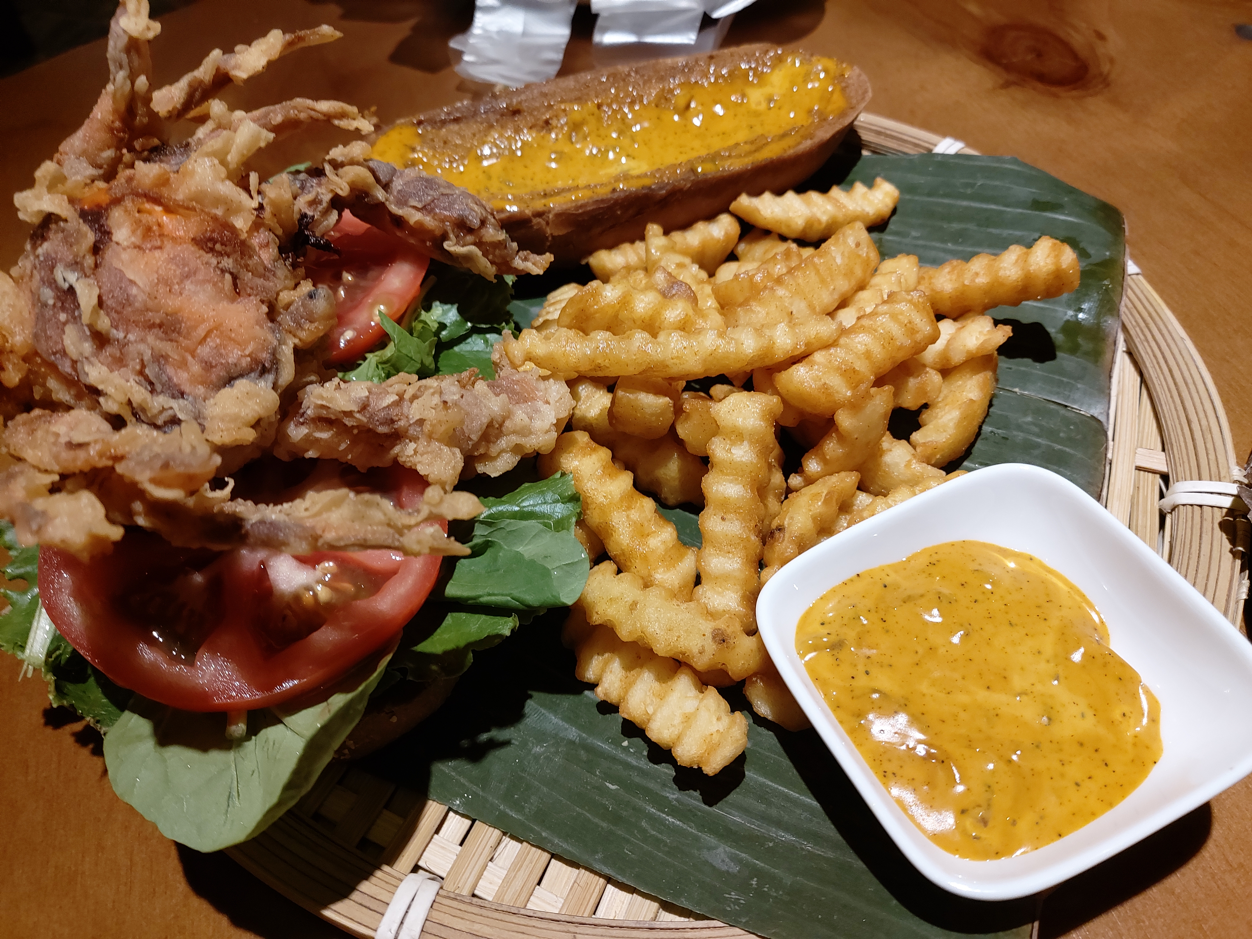 이거 말고 오징어도 시켰는데 원래 오징어류를 안좋아해서 그런지 맛이 없진 않았지만 또 주문하고 싶은 메뉴는 아니었다. (매우 육식파인 사람의 의견. 육식파지만 게살버거는 육식을 무시할만큼 맛있었음)