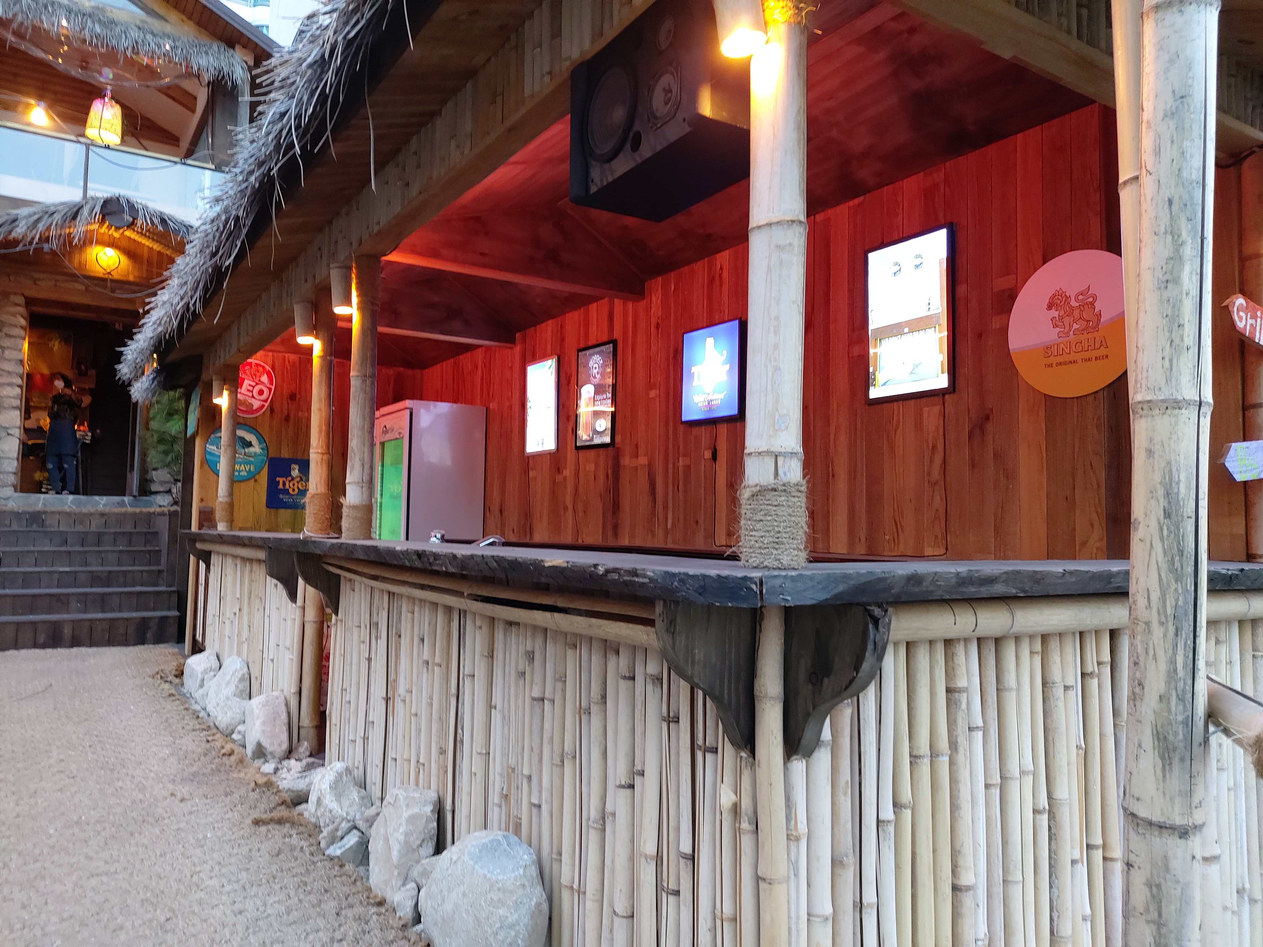 건물 하나가 통째로 어밤부 나이트마켓이었는데 사람이 적어서인지 코로나 거리두기 단계 때문인지 2층은 운영하지 않는다고 1층과 야외테이블만 안내를 했다. (밖에서 본 2층 안의 사람은 유령이었을까....? 몇명은 2층으로 가는것 같았는데 예약손님이거나 관계자지 않을까 싶다)