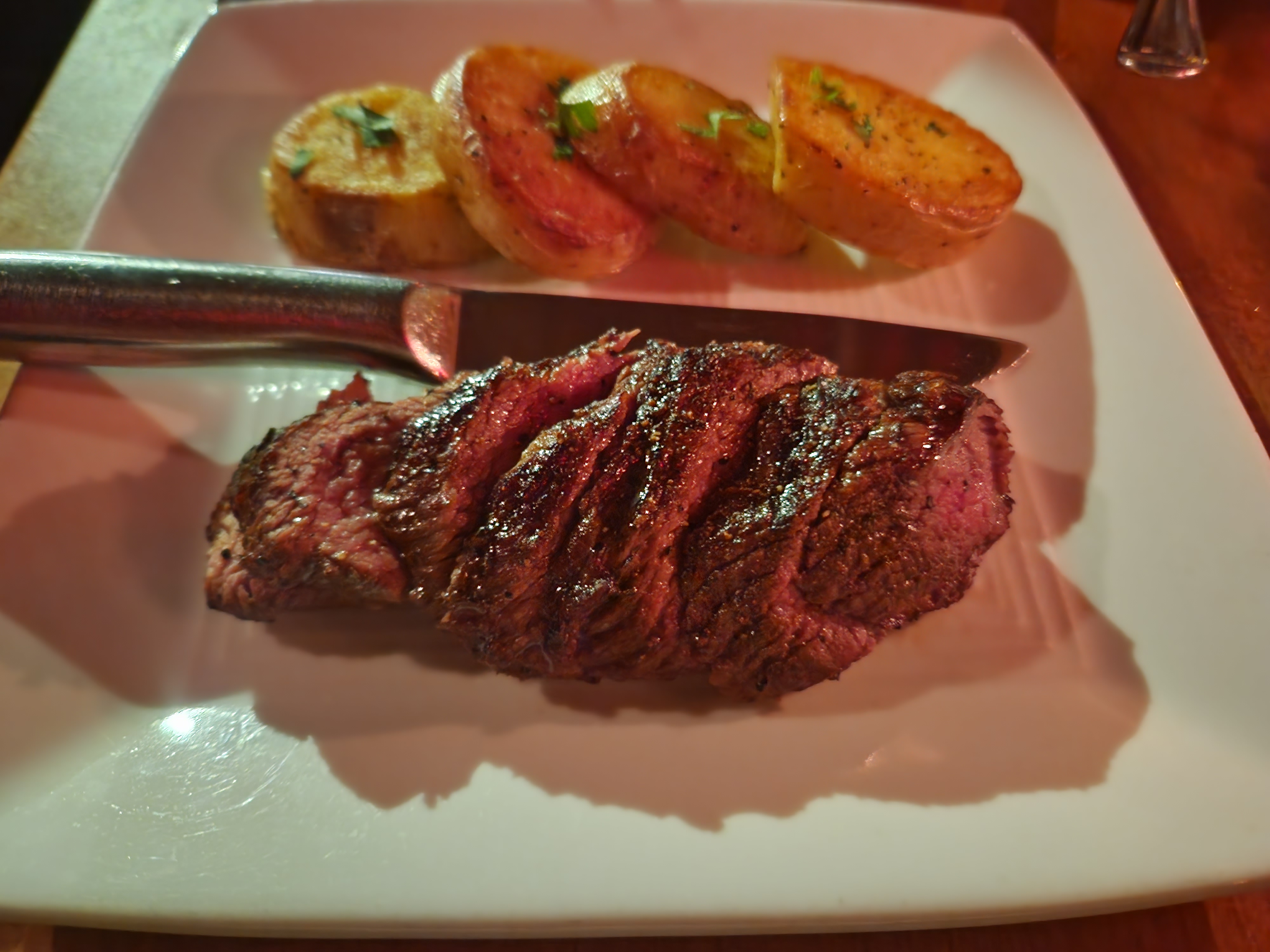 식사는 친구가 아는 식당으로 갔는데, 뭘 골라야할지 몰라서 적당히 맡겼다. 못먹는 음식은 딱히 없지만 고기를 선호한다고 했더니 스테이크를 시켜줬다. 친구는 글루텐 프리+a 의 옵션이 더 있어야 해서 주문하는데 요청사항이 제법 많았다.