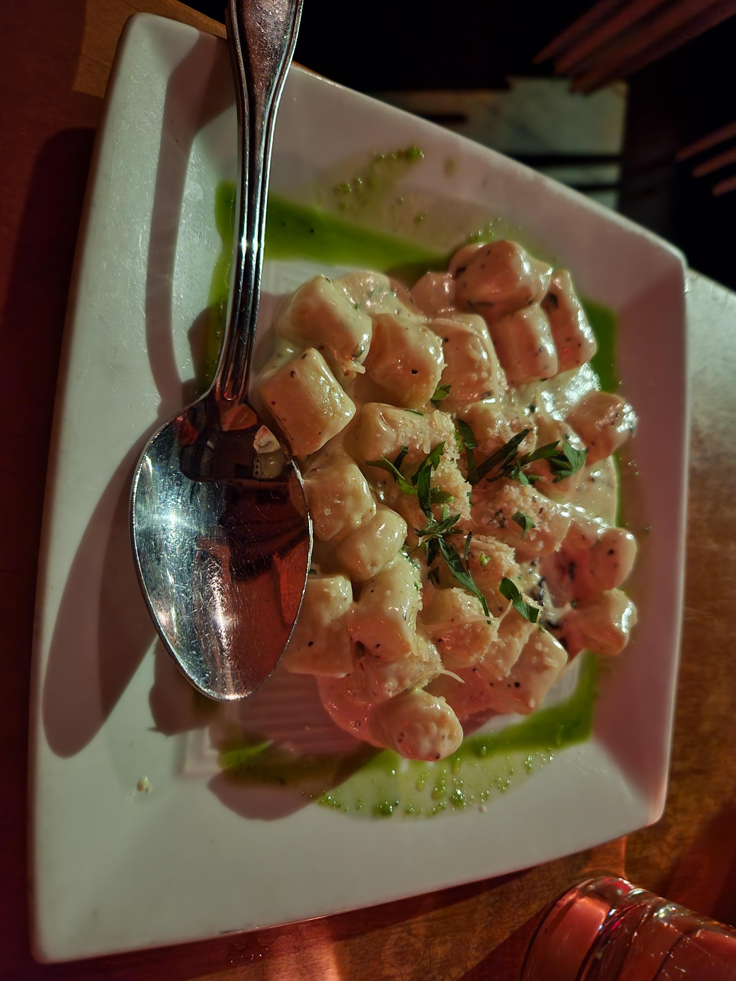 아무튼, 그렇게 식당에서 먹은 건 맥주와 크림 뇨끼, 스테이크, 무려 후식으로는 아이스크림 브라우니까지 있었다. 가격은..... 친구가 내줘서 정확히 얼마인지는 모르겠다. 하나의 메뉴당 양이 그렇게 많진 않았지만 제법 배부르게 먹을 수 있었고, 결국 다 못먹고 디저트를 남겨서 포장했고 다음날 아침으로 먹었다.