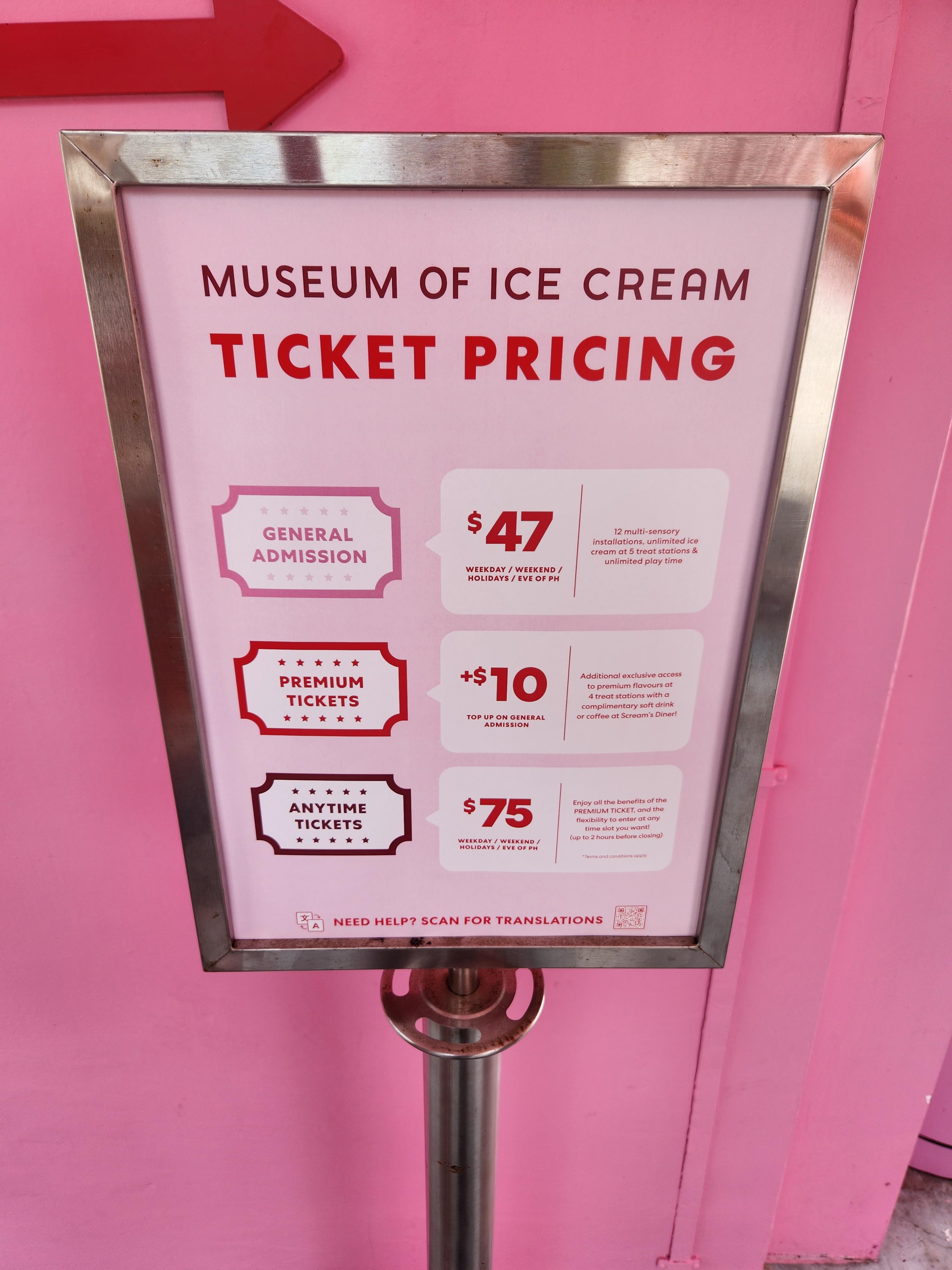 아이들은 부모님이 입장료를 내주니 괜찮지만 직접 내기엔 가격이 싸지 않아 살짝 고민되기도 했다. 입장료 47싱달러, 하지만 안에 들어가서 여러 종류의 아이스크림을 무제한으로 먹을 수 있다는 장점이 있다. 아이스크림이 아주 끌리는 날이라면 가서 아이스크림만 열댓개 먹고 본전을 뽑겠다는 생각으로 가 볼 수도 있을 것 같다. 물론 찬걸 많이 먹고 배탈나는 건 고려하지 않았다. 구경하다가 뒤로 돌아갈 수는 없다고 하니 맛있는 아이스크림이 있다면 그 자리에서 두세개 더 먹는 걸 추천한다고 한다. 실제로 뒤로 이동하는 사람을 본 적은 없지만 막는 사람을 본 적도 없어서 가능할 것도 같다