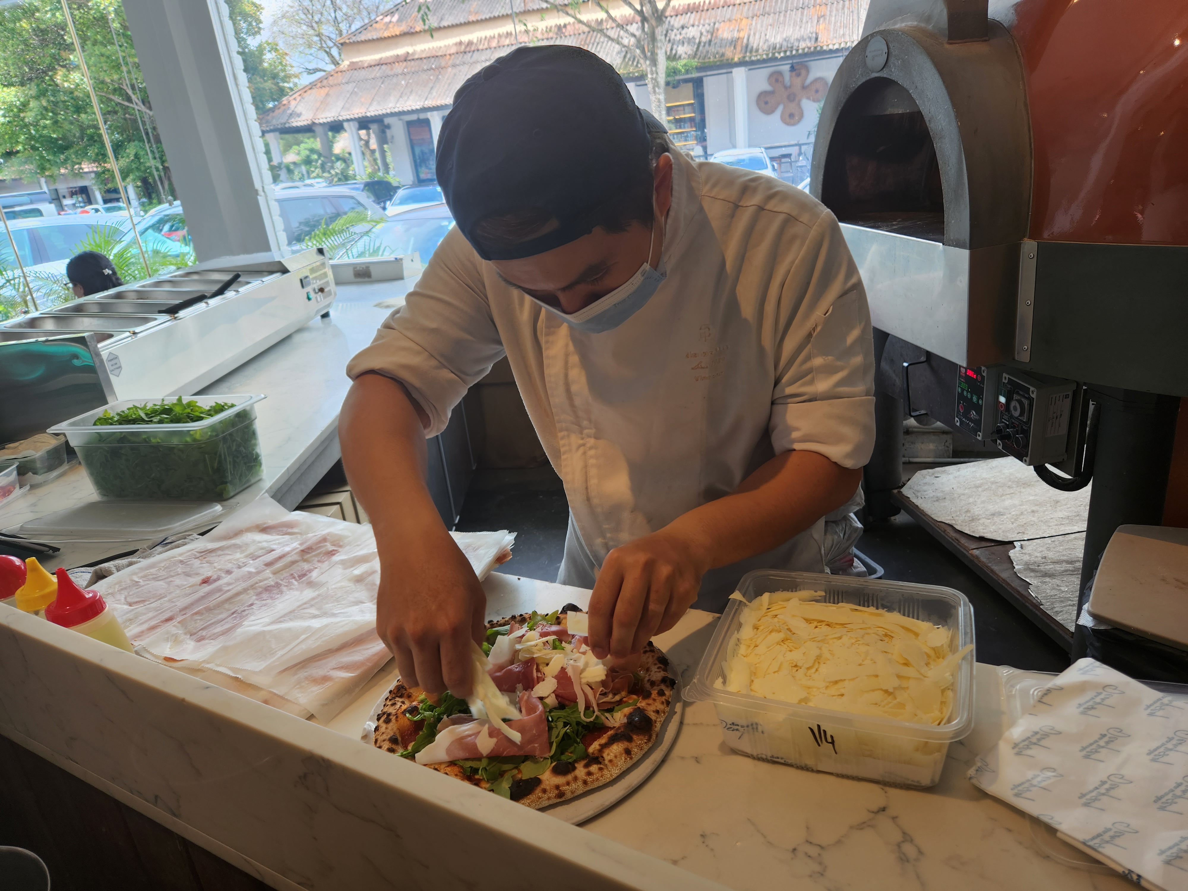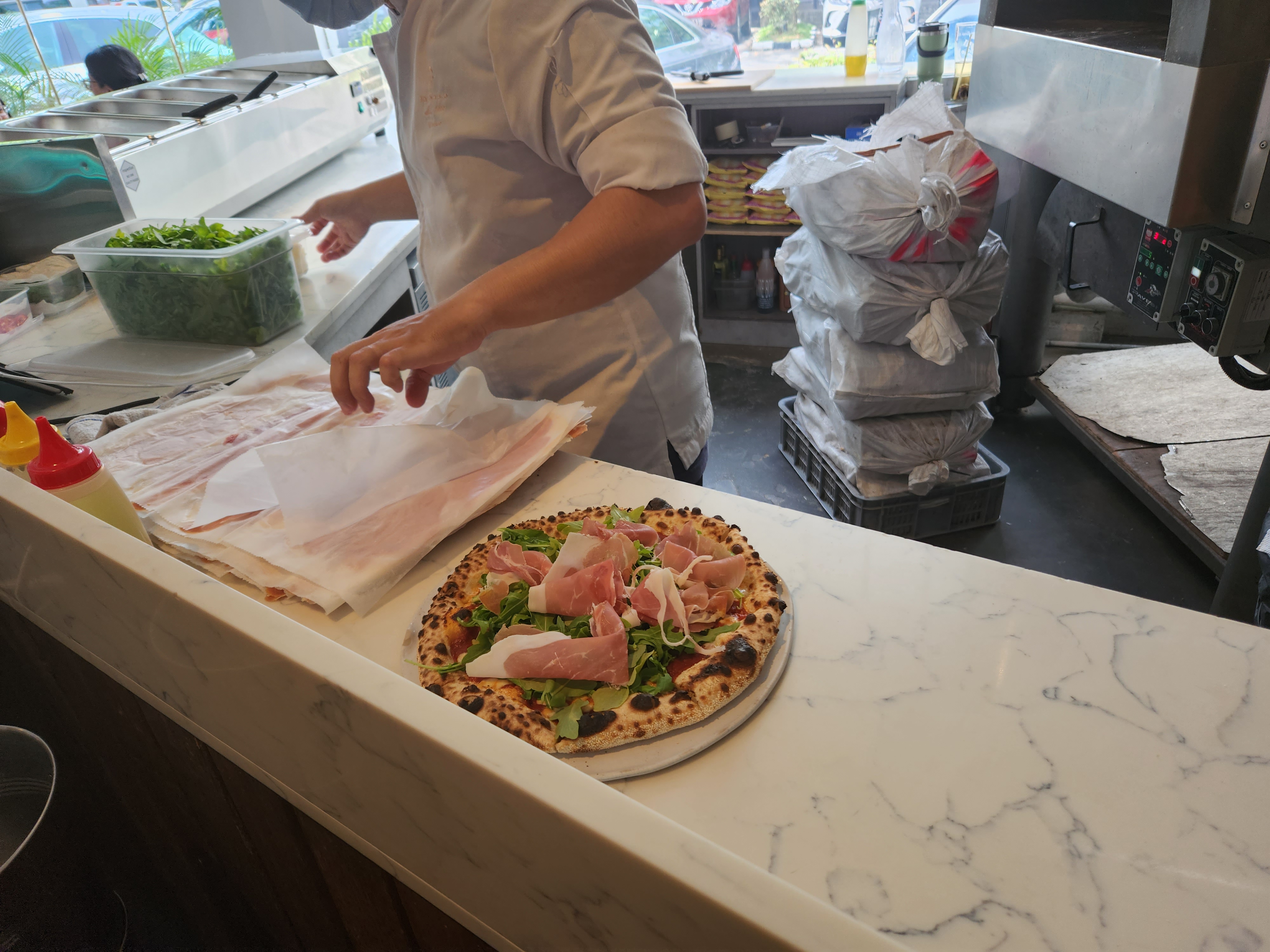 피자 화덕이 바로 뒤에 있어서 우리의 피자 도우가 구워진 뒤 토핑을 올리는 것까지 바로 지켜볼 수 있었다.