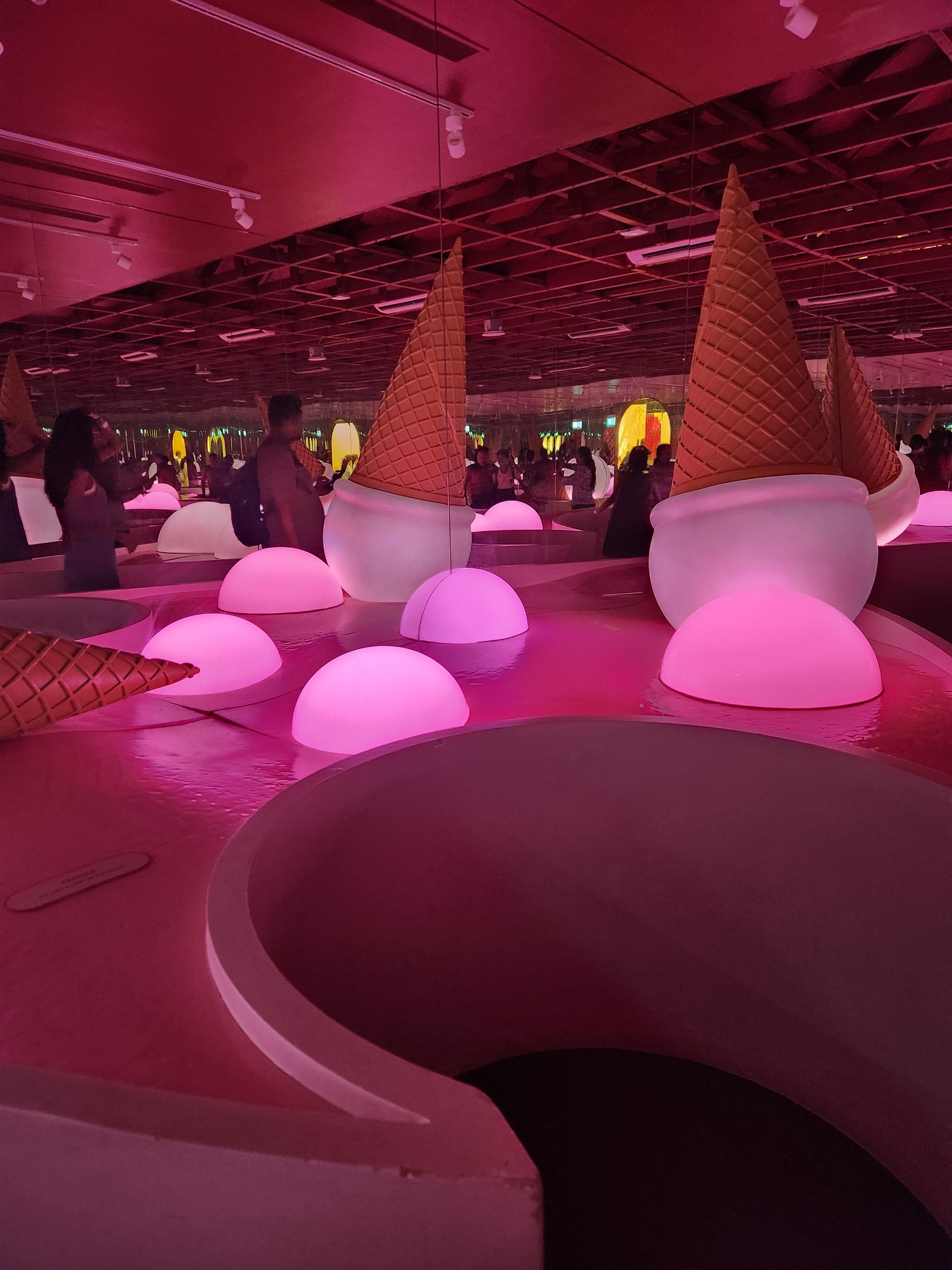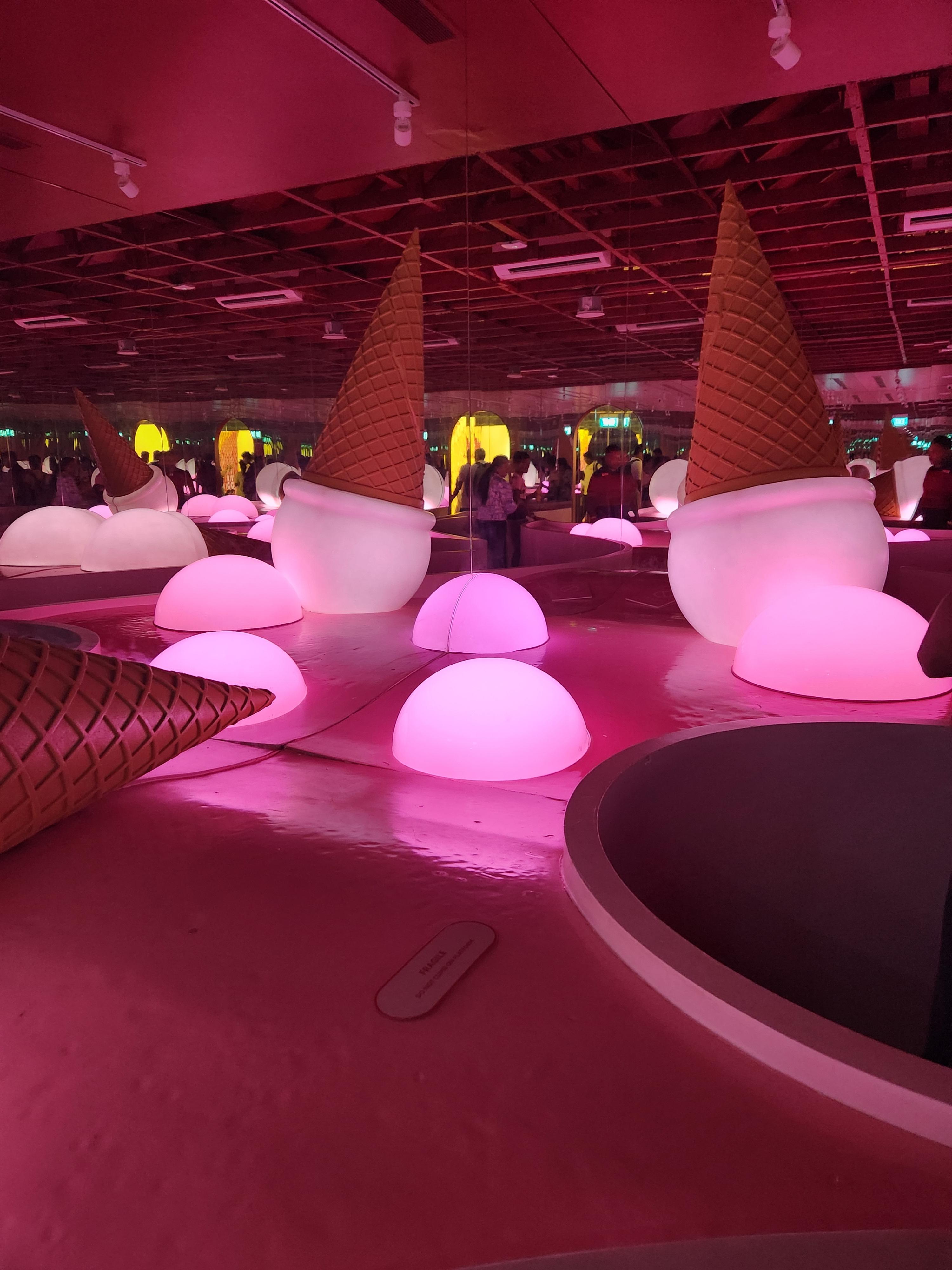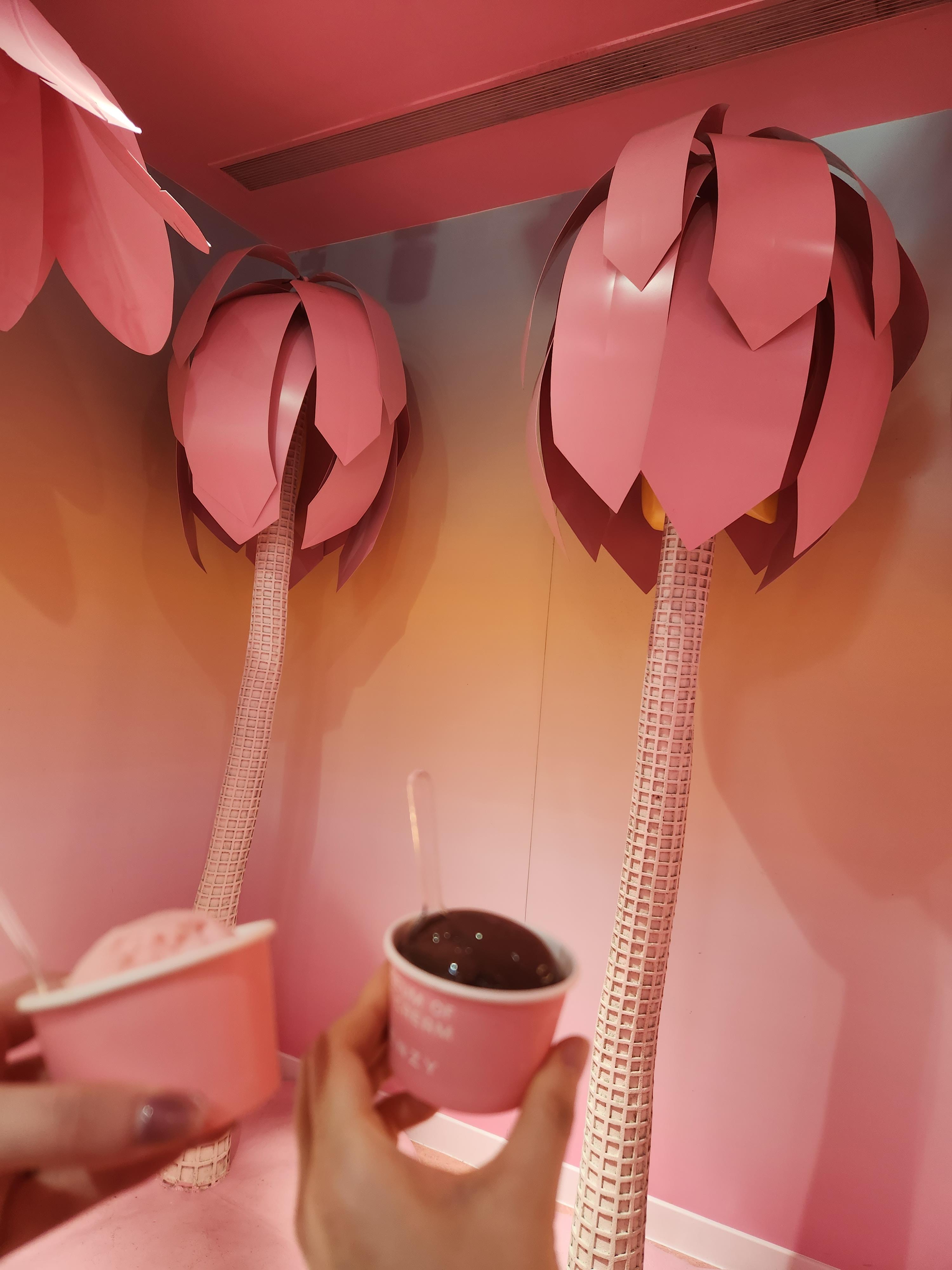 그리고나서 보인건 아이스크림콘이 거꾸로 서있는 포토존. 역시 분홍색은 사진이 잘 나와서인지 이곳 저곳 마련되어있는 공간마다 사람들이 사진을 찍느라 정신이 없었다. 사람들을 피해서 최대한 빈 공간만 찍는것도 어려웠지만 틈틈히 찍어봤다.