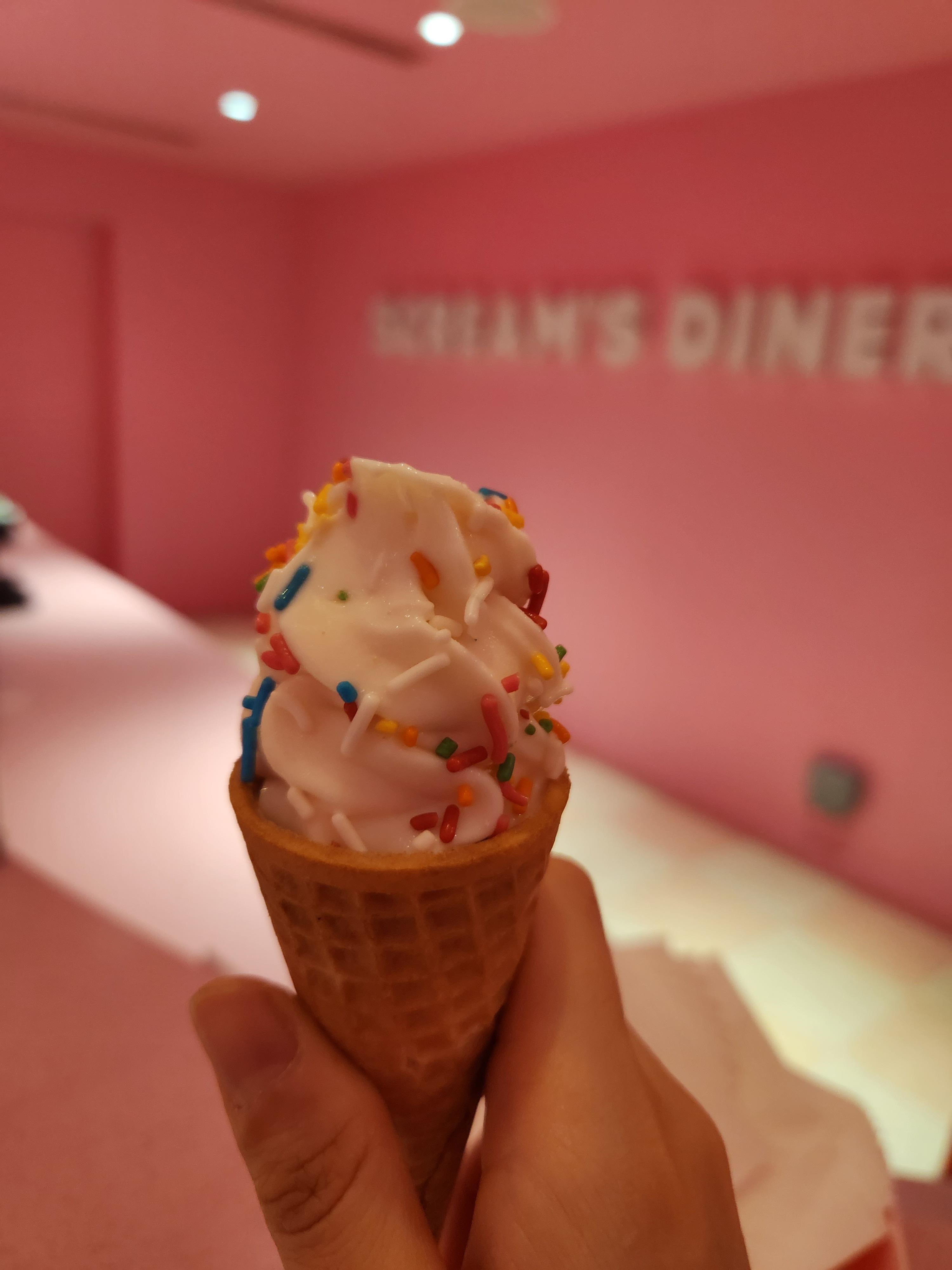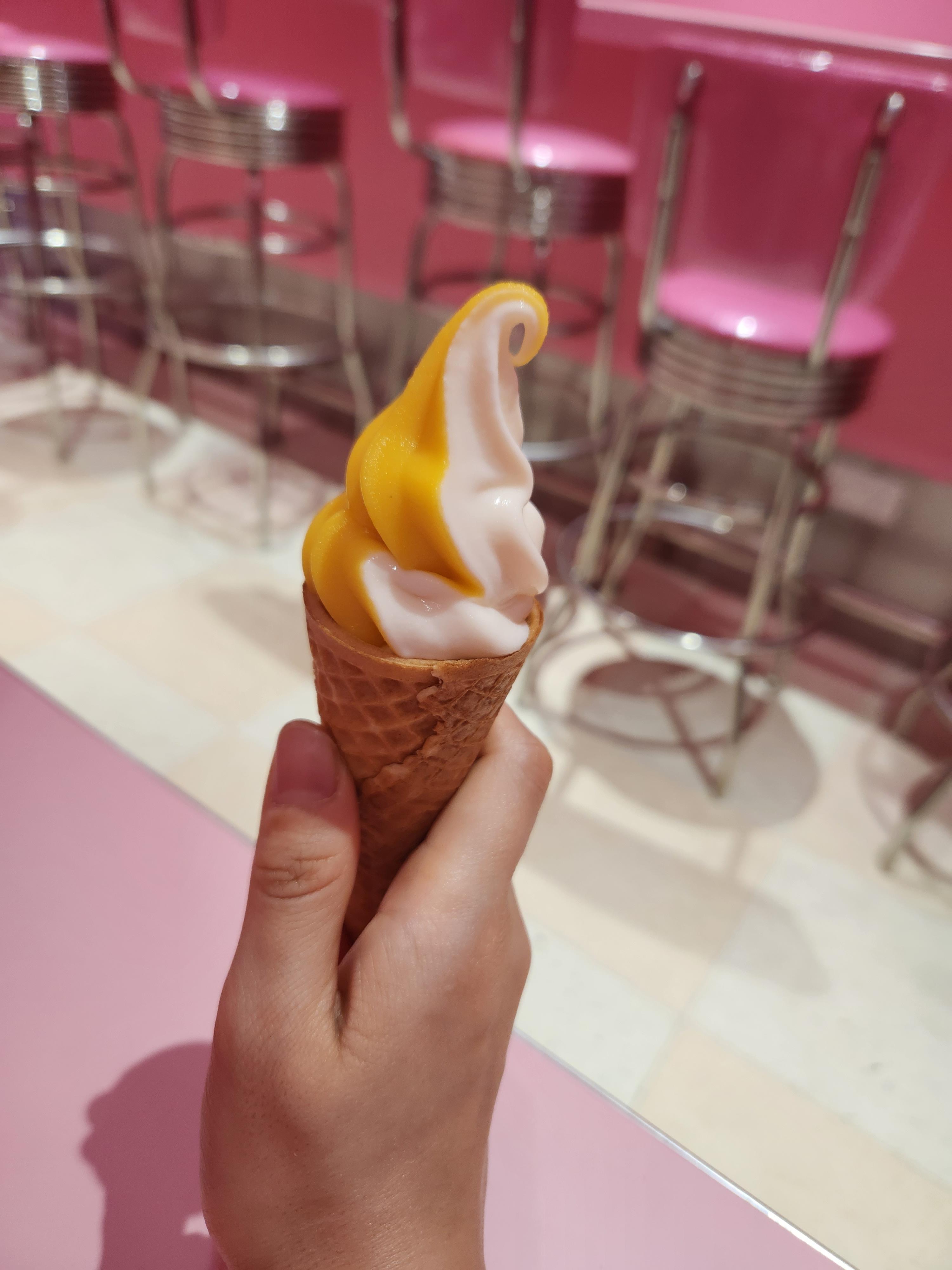 그 다음으로 볼 수 있던 아이스크림은 콘아이스크림 이었는데, 스프링클도 뿌려줘서 톡톡 튀는 맛을 느낄 수 있었다. 아이스크림은 요거트와 망고맛이었던 것 같다. 물론 스프링클 뿌리는 것도 취향이기 때문에 안뿌릴 수도 있다.