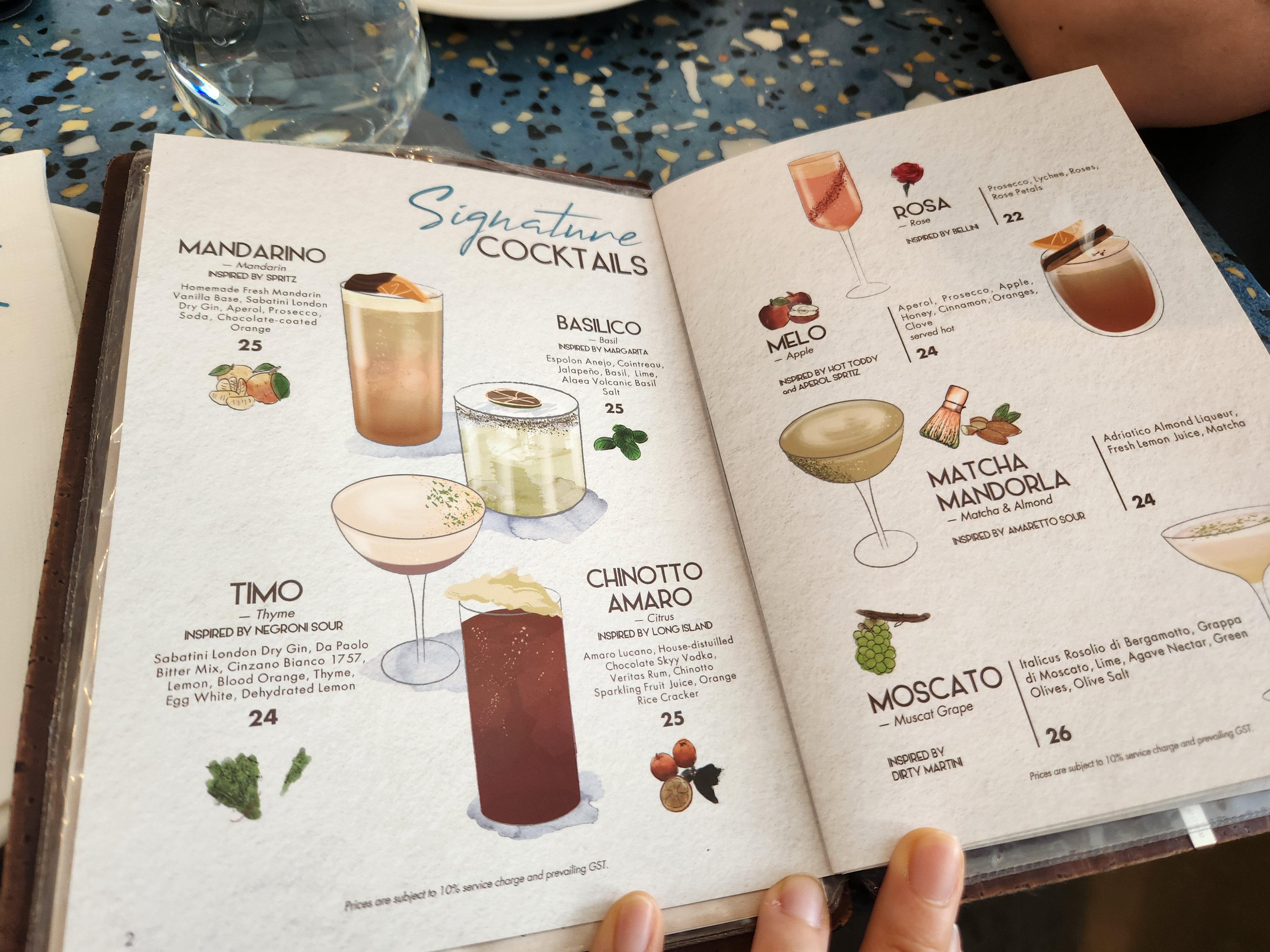 일단 메뉴판을 보는데, 디저트보다는 브런치나 파스타, 피자 메뉴가 눈에 들어왔고, 예쁘게 그림으로 그려둔 칵테일 메뉴들도 끌렸다. 게다가 그림으로 그려진 칵테일들은 무려 가게의 시그니쳐! 술을 마실 생각은 안하고 왔었는데 그림에 혹해서 마셔야할 것 같았다.