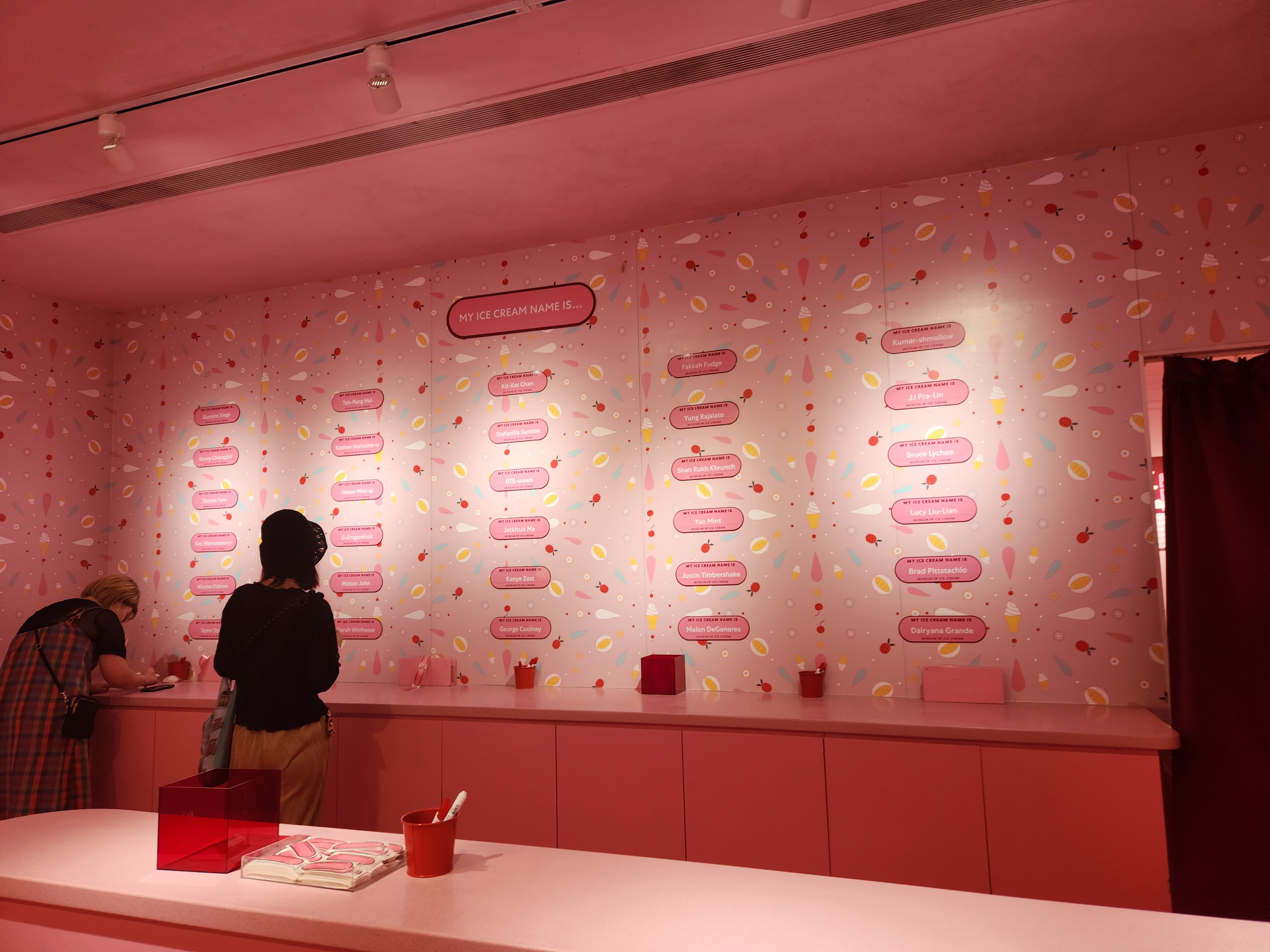 아이스크림 박물관의 시작은 분홍색보다는 빨간색에 가까운 실내에서 시작한다. 내 별명을 하나 짓고 이름표로 붙이고 다니는데, 딱히 어디에 쓰는 목적은 아니니 맘편히 적어도 된다.