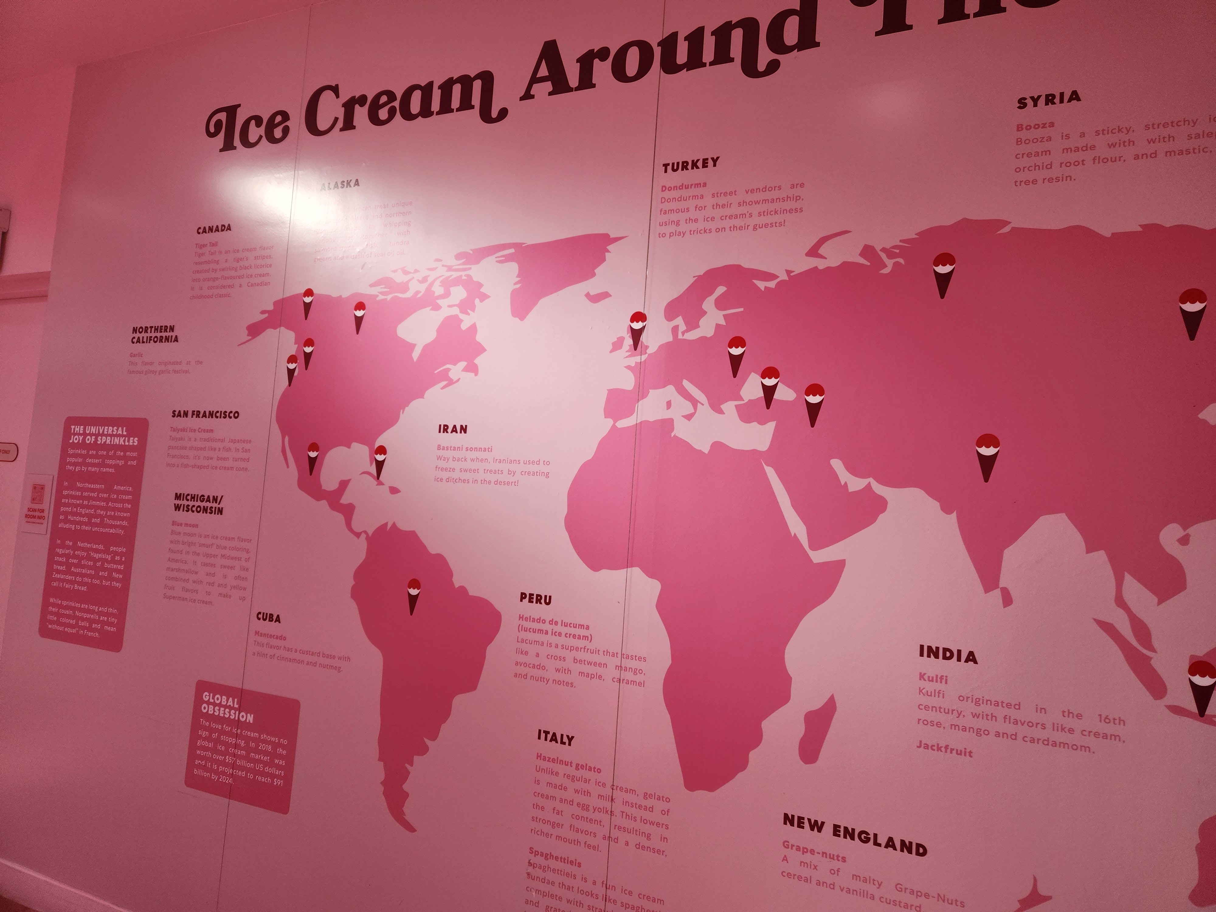 아이스크림 박물관이라는 독특한 곳이었다. 아이들을 위한 곳이라고 볼 수도 있겠지만 마음만은 나도 어린이(?) 이므로 큰마음 먹고 가보았다. 근처에 가면 분홍색으로 된 건물이 보여서 아 여긴가?! 싶은 장소가 눈에 확 들어온다.