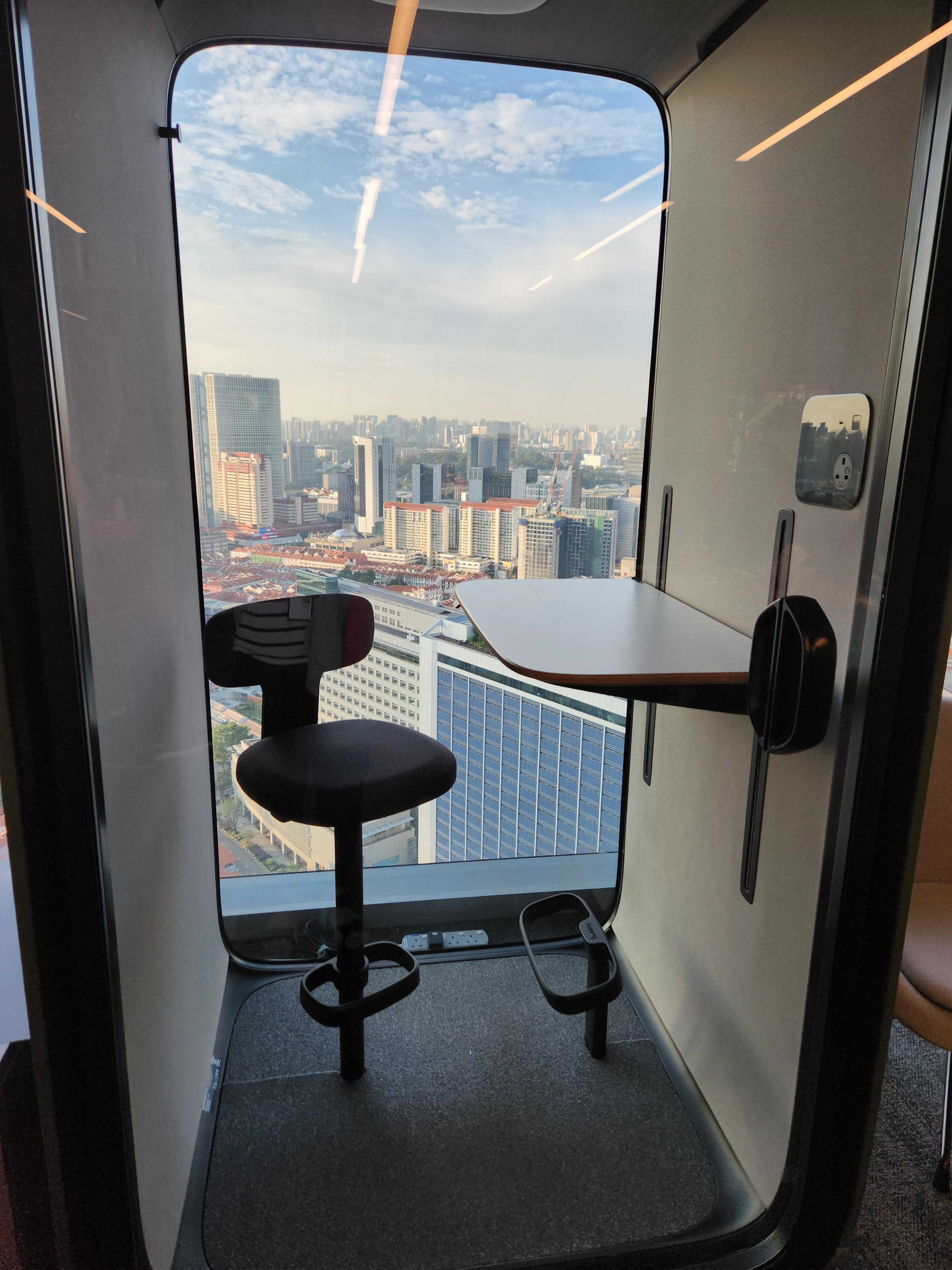 파란 하늘이 보일 때면 줌콜을 해도 기분이 좋을 것 같은 폰부스도 있었고 업무공간도 다양했다. 모니터가 있는 책상은 많지 않아서 모니터가 없는 카페같은 자리를 예약했는데 그마저도 제법 잘 꾸며져 있었다. 모니터 없이 노트북만으로 일하기는 조금 불편했지만 잠깐 일하고 대부분 회의만 할 거라면 이 정도도 나쁘진 않을 것 같다. 하지만 출근이 3일 이상이라면... 흠