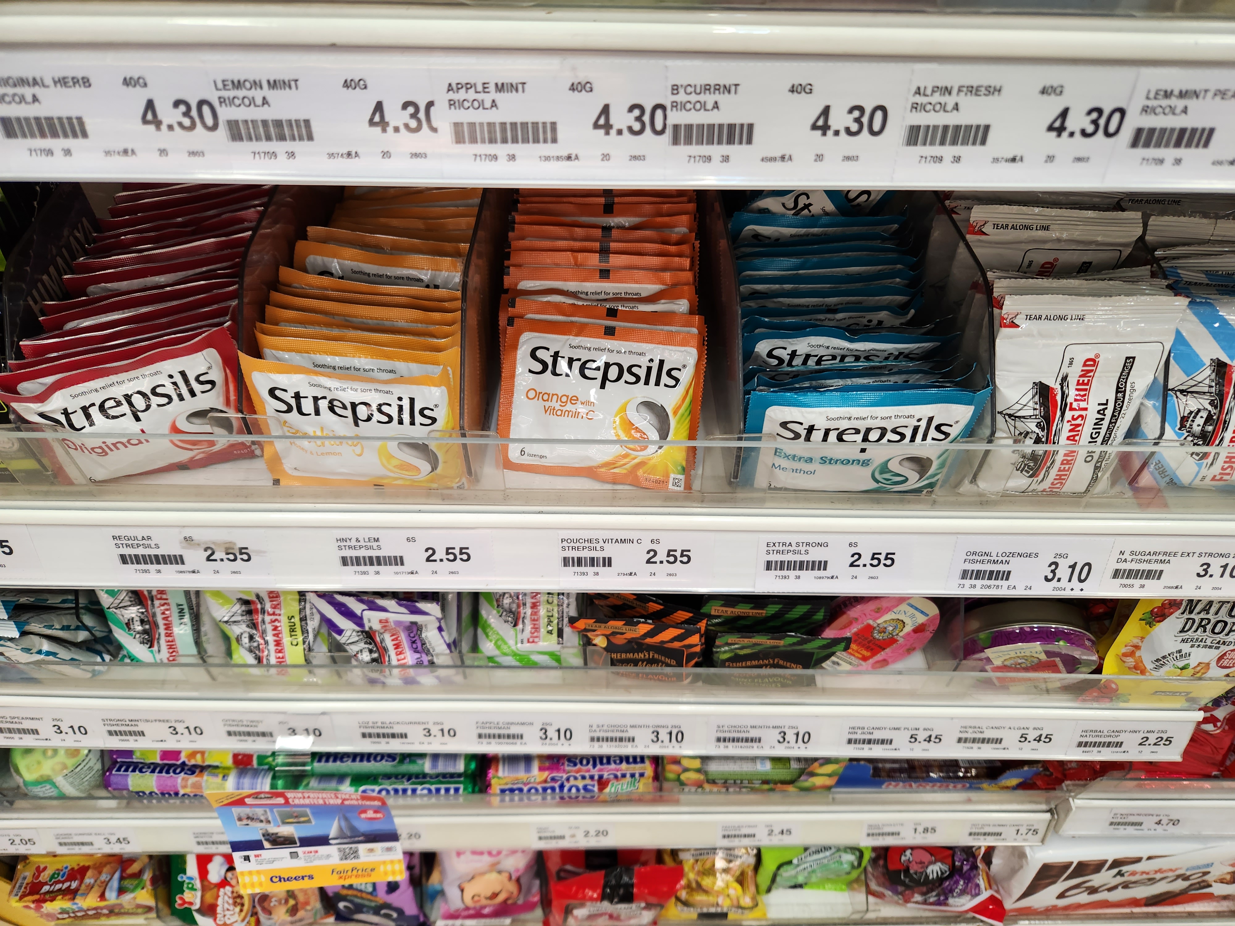 목아파서 목캔디 같은거라도 찾겠다며 갔던 바로 옆 편의점에는 스트렙실이 있었다. 나의 구세주.... 편의점에서 스트렙실을 대량구매해서 목아플때마다 먹었다. 하루에 몇개 이상 먹지 말라고 써있긴 한데, 하나 먹으면 한시간은 기침하지 않고 버틸 수 있었다. 기침을 참아야 하는 상황에서는 정말 구세주가 따로 없다.