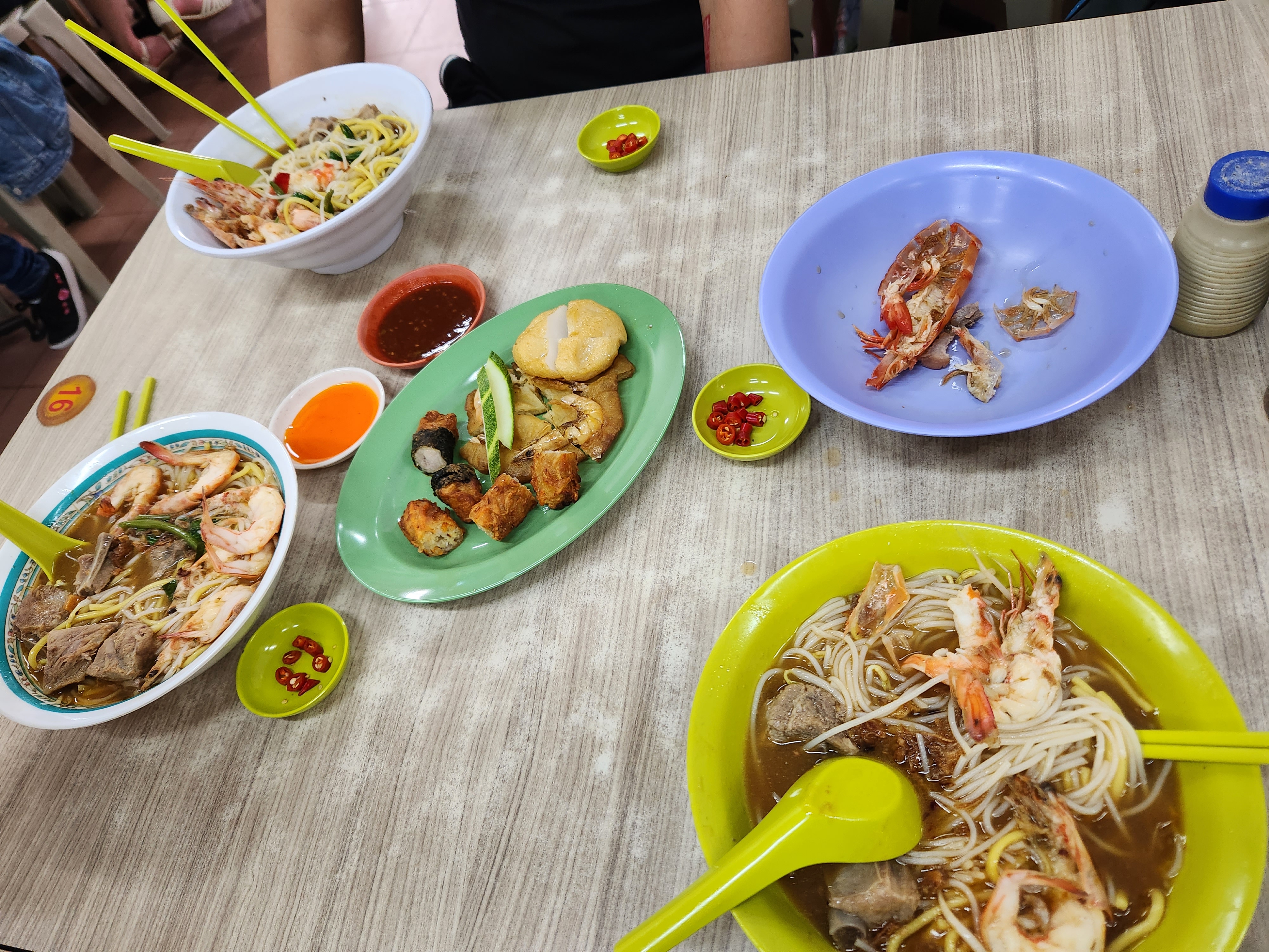 다음날 갔던 새우국수 맛집. Blanco Court Prawn Mee. 파크로얄 호텔 바로 앞에 있는 식당이다. 에어컨도 없는 식당이지만 현지인이나 관광객들에게도 맛집이라서 그런지 많은 사람들이 방문한다. 새우국수 집이지만 고기가 들어간 메뉴도 있고 둘중 하나만 넣은 국수를 주문할 수도 있다. 현금만 받았던 걸로 기억한다.