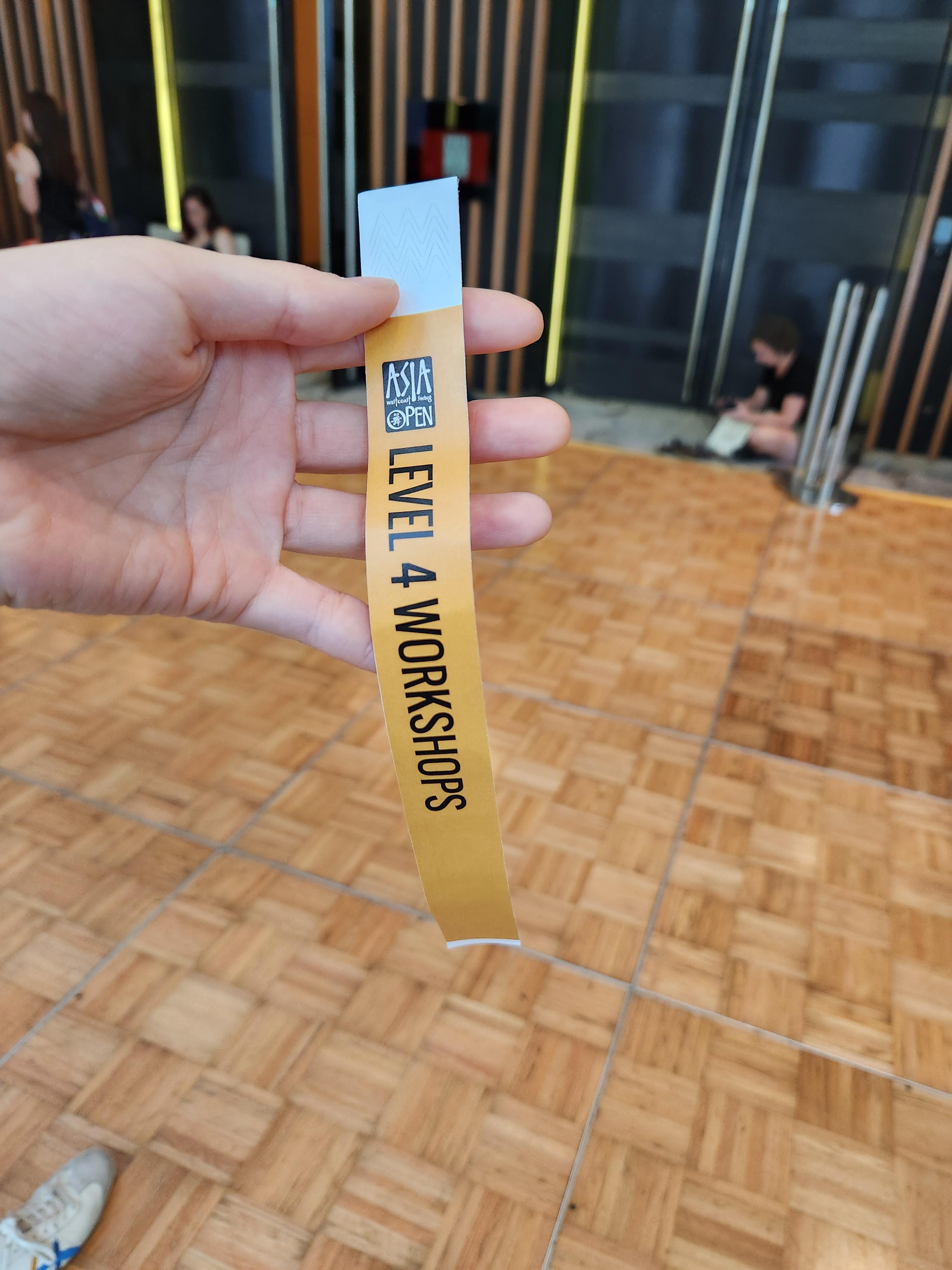 싱가포르 여행의 본 목적인 Asia WCS Open. 줄여서 대충 아시아 오픈이라고 부른다. (웨스트 코스트 스윙이라는 이름은 어디 붙이거나 설명하기엔 너무 길다) 오전에 레벨테스트를 통과하고 신나서 밴드를 찍었다. 하지만 현실은 인터 파이널도 못가는 실력.... 그냥 적당히 인원을 맞추기 위해서 올린건가 싶기도 하고, 소셜과 컴피의 목적이 조금 달라서 그런 것 같기도 했다.