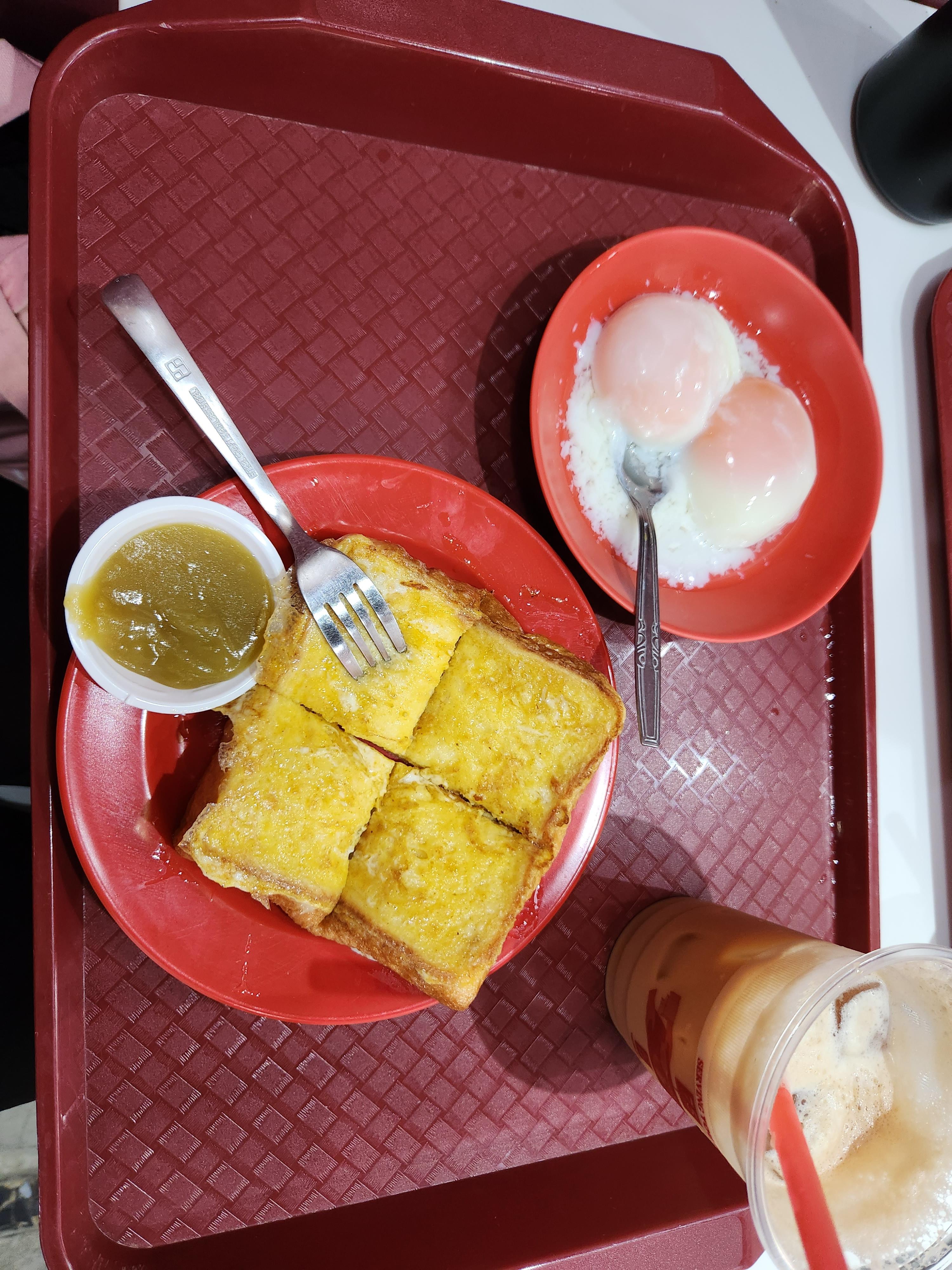 일요일 아점은 카야 토스트의 프렌치토스트와 수란세트였다. 막 토스트를 주문하고 보니 춤추며 여러번 봤던 친구가 있어서 합석해서 같이 아침먹으며 얘기를 나눌 수 있었다. 적극적으로 인사하고 말걸고 다니는 성격은 아니지만 이런 기회는 놓치지 않는다...! (는 자주 놓친다) 전날 큰일이 있었던 친구라 그 얘기도 하며 괜찮은지 물어보고, 춤 얘기와 이벤트 이야기만 했는데도 시간이 금방 갔다.