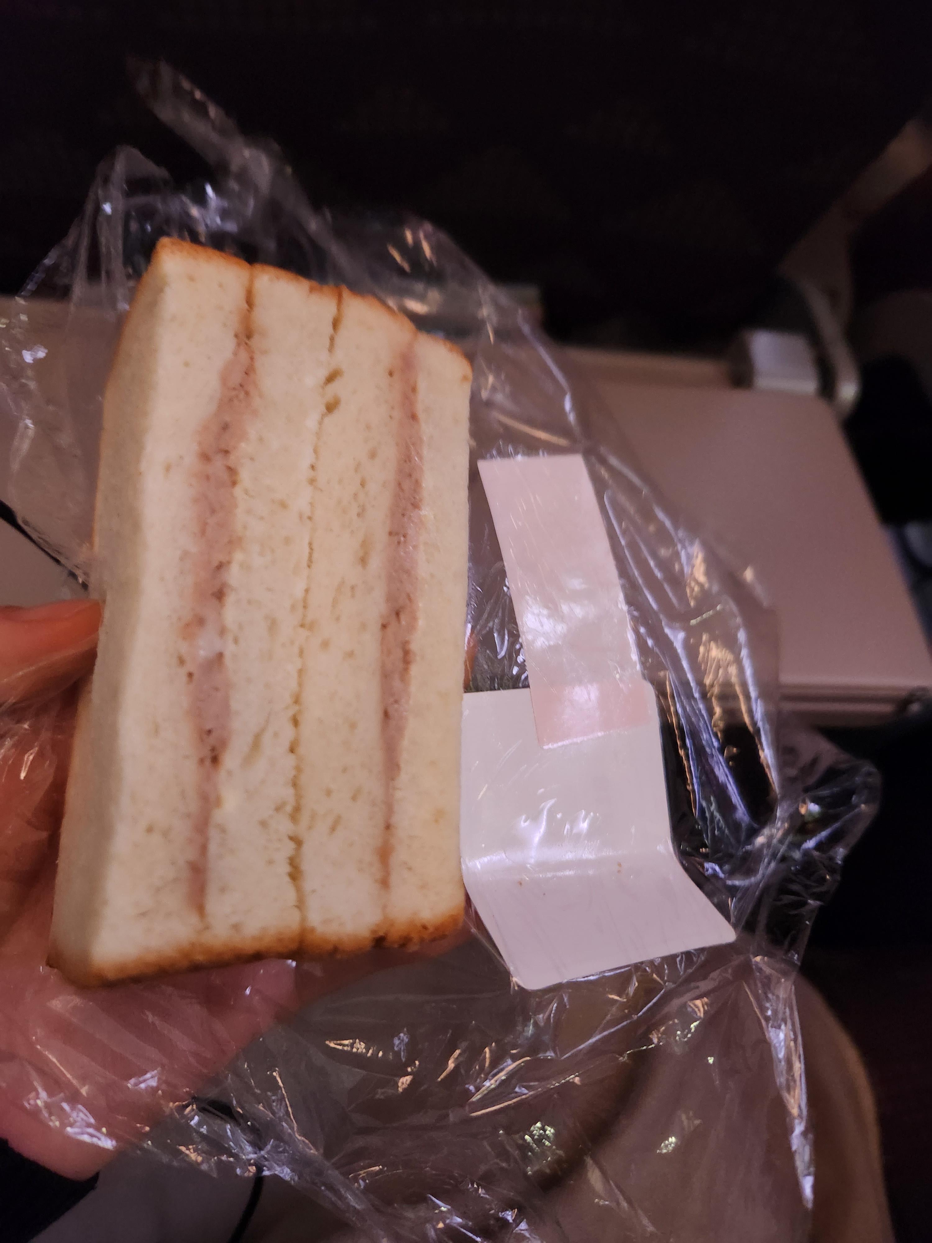 돌아오는 길의 특별기내식은 저자극식. 간이 세지 않은 메뉴인데, 개인적으로는 싱가포르 갈 때 먹었던 저염식과 크게 다른 점을 찾을 수 없었다. 느끼는건 다이어트식.... 닭가슴살과 당근, 브로콜리와 흰밥이 나온다. 과일과 샐러드 약간, 그리고 빵이 나오는 것까지.. 그래서 그런지 간식으로 샌드위치를 한번 더 준다. (비행시간이 6시간이라 준 것 같다)