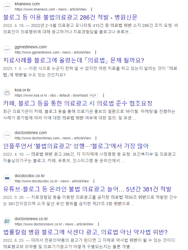 최근 블로그에 불법의료광고(돈주고 가짜 후기를 올리는 것 등)들이 넘쳐나면서 이런걸 제제하는건 이해하겠는데 그러면 대체 병원의 후기는 뭘 보고 그 병원을 찾아가야할지.... 입소문밖에 없는건가 아니면 그냥 가서 잘못 고침(?)을 당하고 다른데를 찾아가라는건가 싶다.