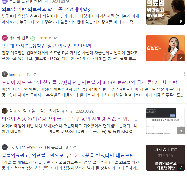 결국 다른 블로그의 도움을 받아 의료법(의료광고) 이 대체 뭘 어쩌라는건지 찾아봤다. 운영정책이나 공홈보다 블로그에 유용한 내용이 있다는건 좀 반성해야하지 않나 싶다. 제대로 된 정보도 제공하지 않고 운영한다는 건데, 컨텐츠를 만들어 공급하는 사람들에 대한 대우도 그렇고 일관되지 않(게 보이는)은 정책 역시 반성해야 될 부분이라고 생각한다. 글을 올릴거면 알아서 찾아보고 올리라는 건가... 차라리 유튜브에서 알고리즘을 태워서 안내하는게 훨씬 친절하다는 생각이 들었다. 국내 포털 사이트 이렇게 일해도 되나...